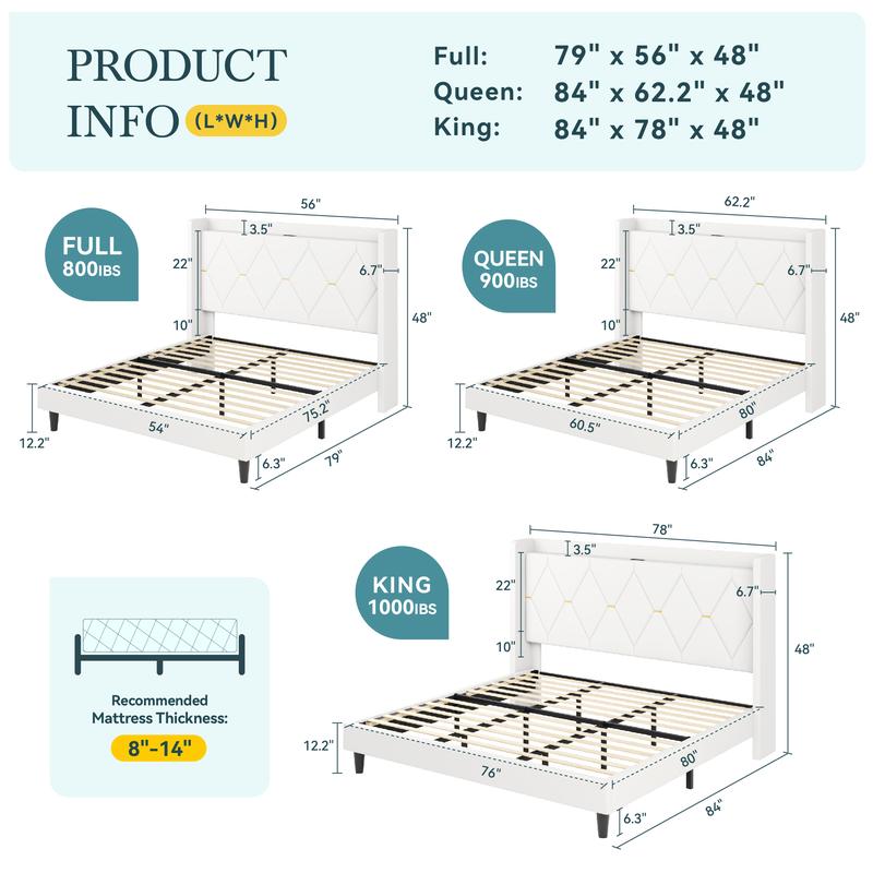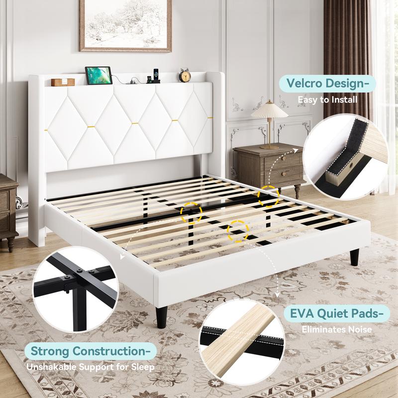 Say goodbye to cramped nightstands. The integrated shelf on the headboard provides ample space for your phone, glasses, books, and other bedtime essentials, helping you maintain a tidy and organized bedroom.
