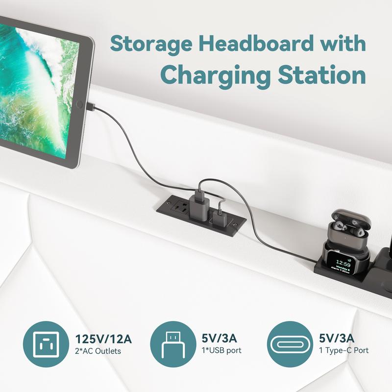 Keep all your devices powered within easy reach. This bed frame features a built-in hub with 2 AC outlets, 1 USB port, and 1 USB-C port, eliminating the need for extra power strips and keeping your space clutter-free.