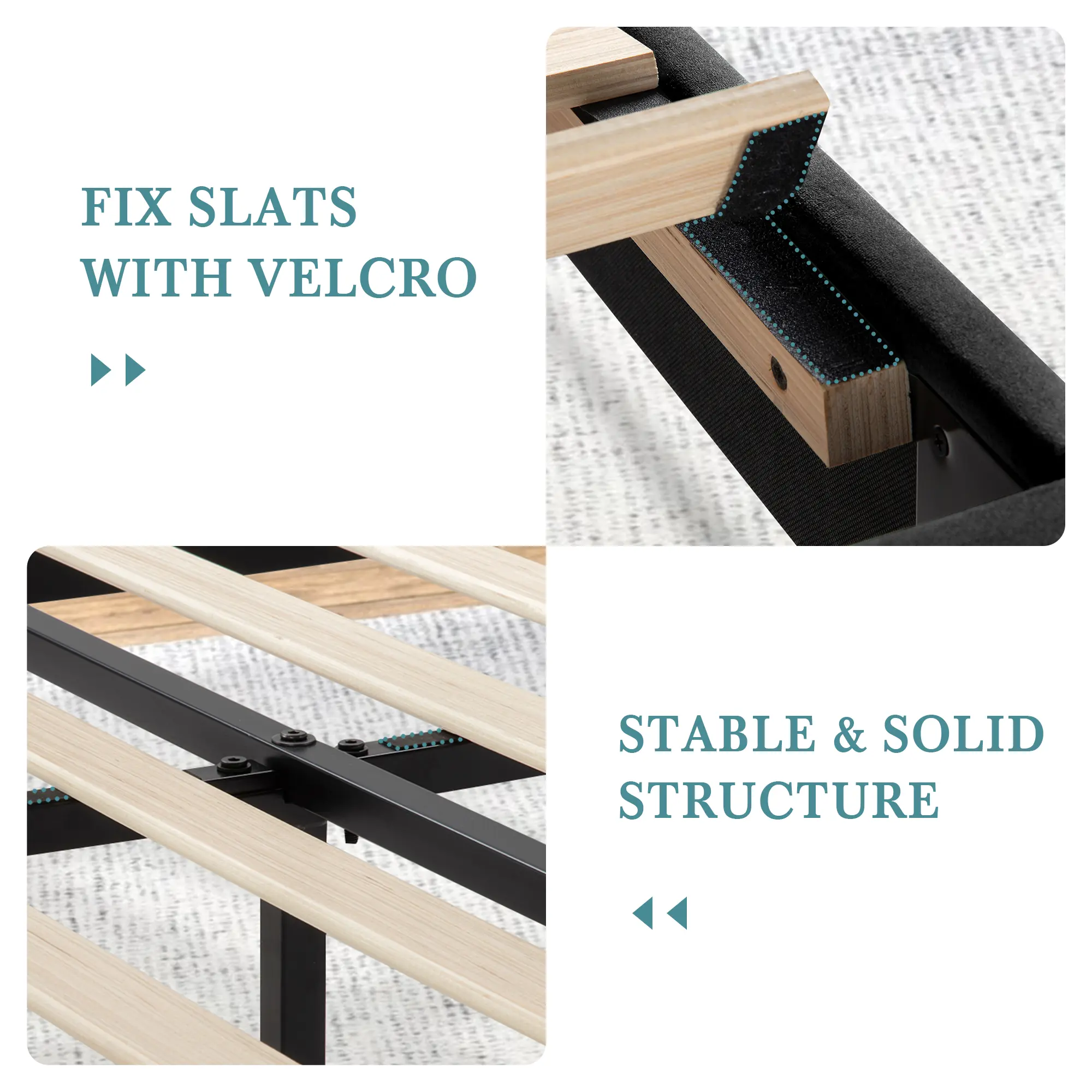 ·Solid Structure: Sturdy steel frame and durable wooden slats, offers pretty stability and durability. No box spring is needed.