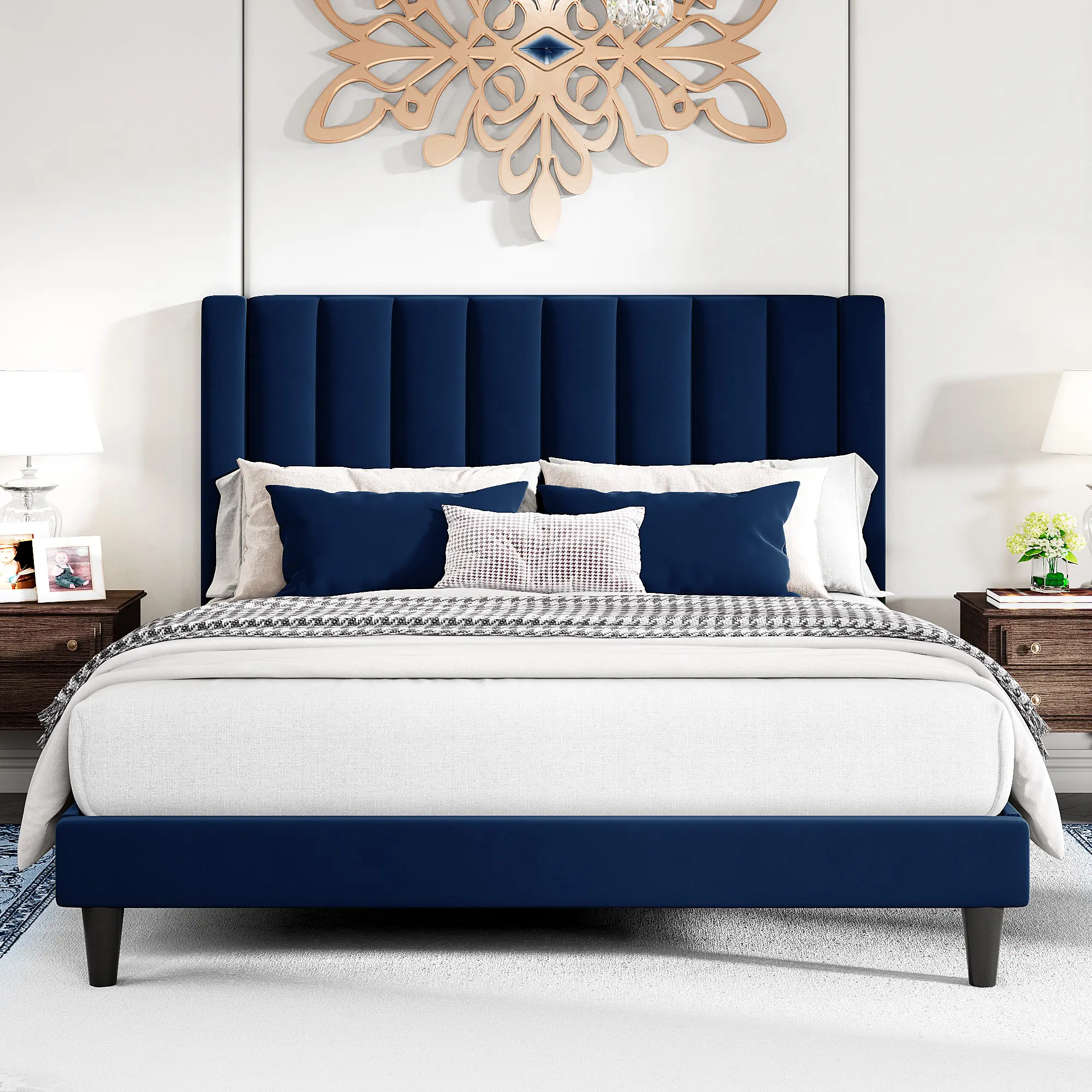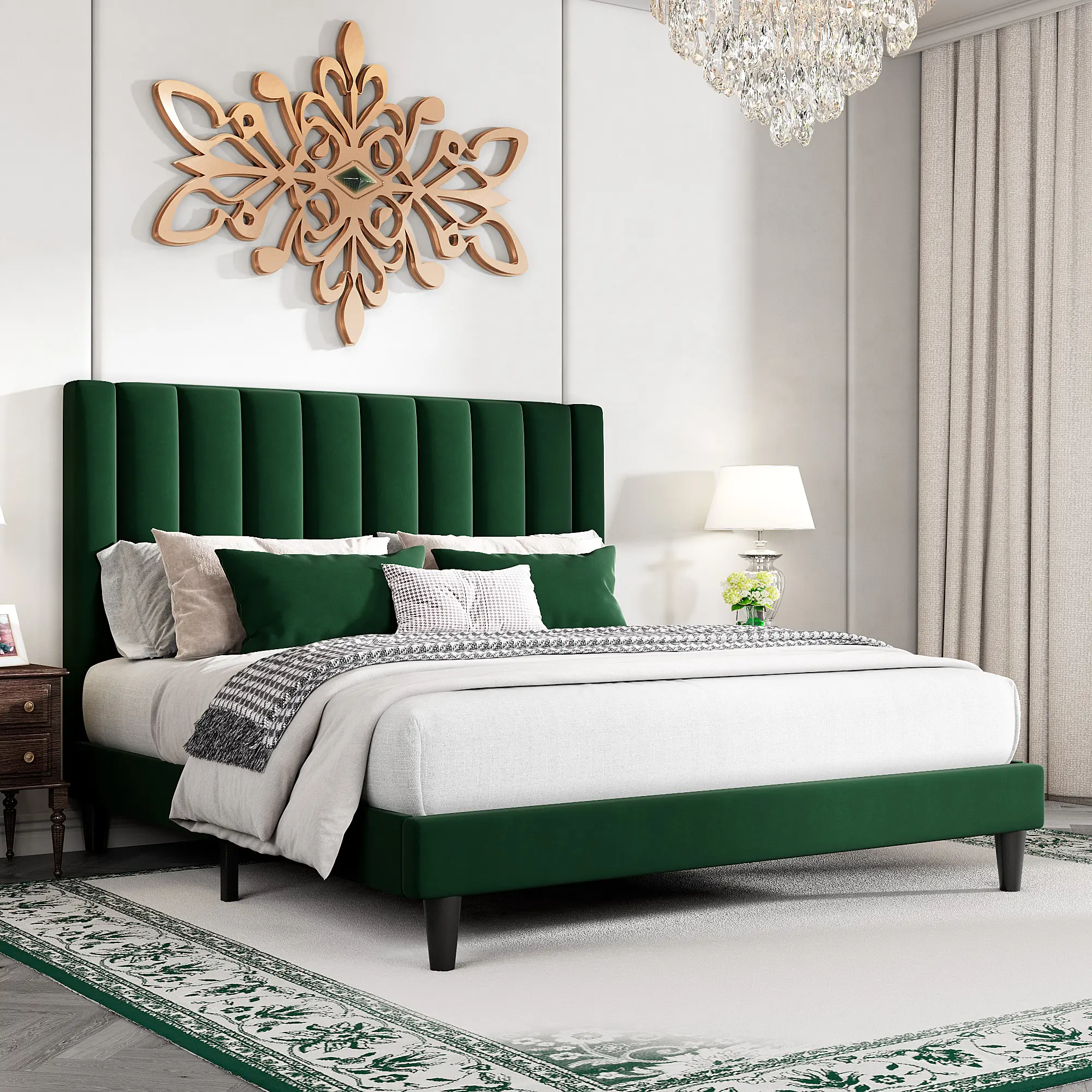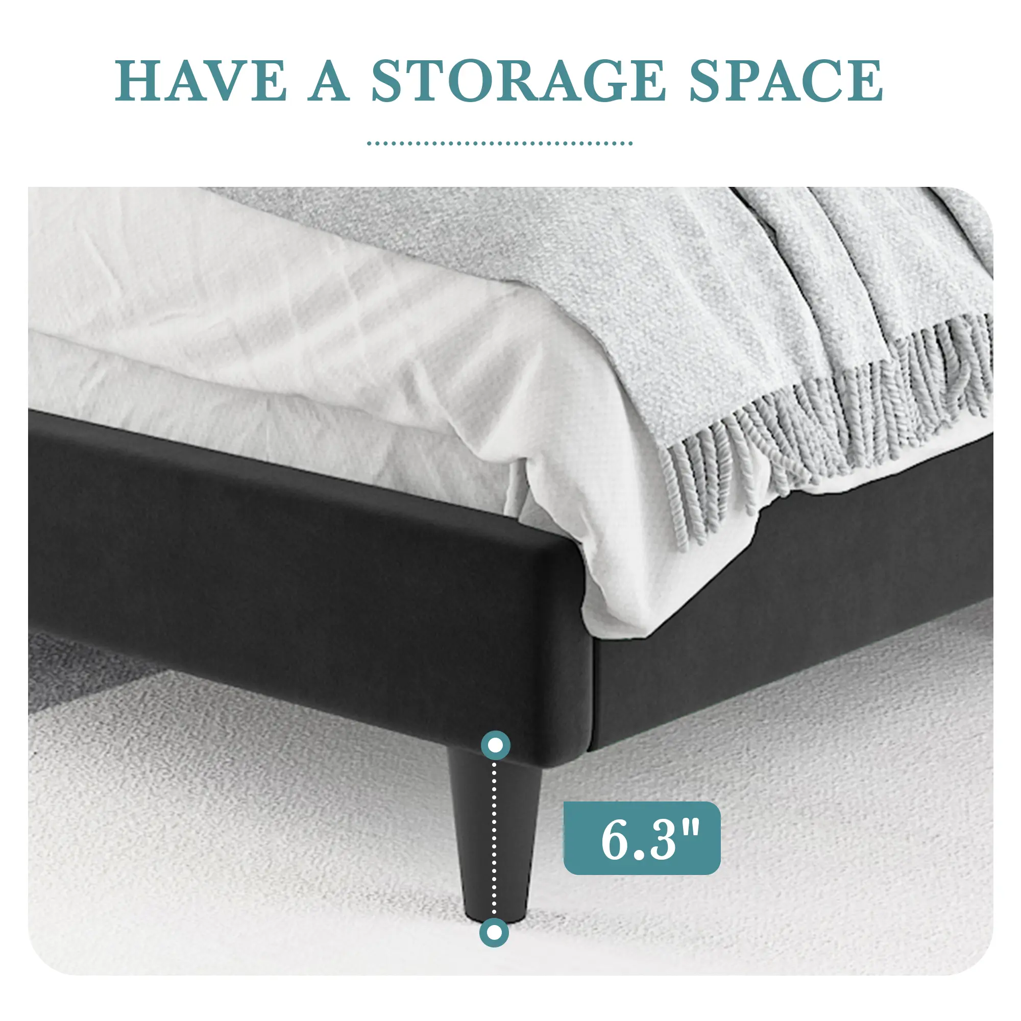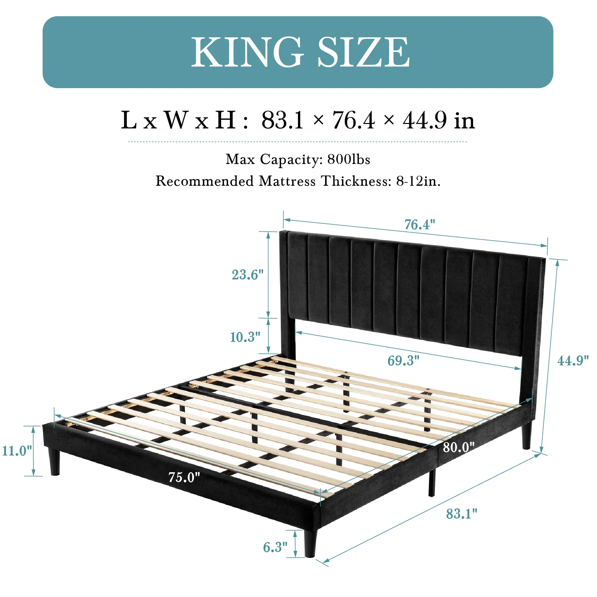 ·Modern Design: The velvet upholstered plush vertical channel headboard is modern and cozy. This upholstered bed frame can infuse any bedroom with a feeling of contemporary cool. This bed frame also can seriously upgrade your room’s aesthetic.
