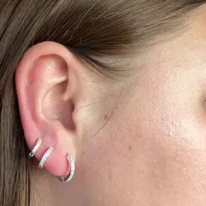 These hoop earrings are higher quality than I thought they would be. Very pretty and easy to insert into my pierced upper ear cartilage. I am allergic to nickel and these are high quality titanium or silver. I never take them out and have had no issues. Love them. Highly recommend!
