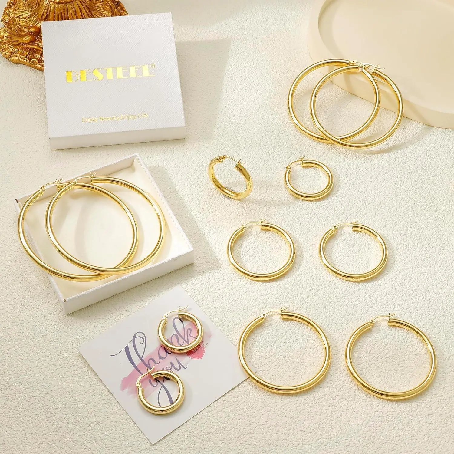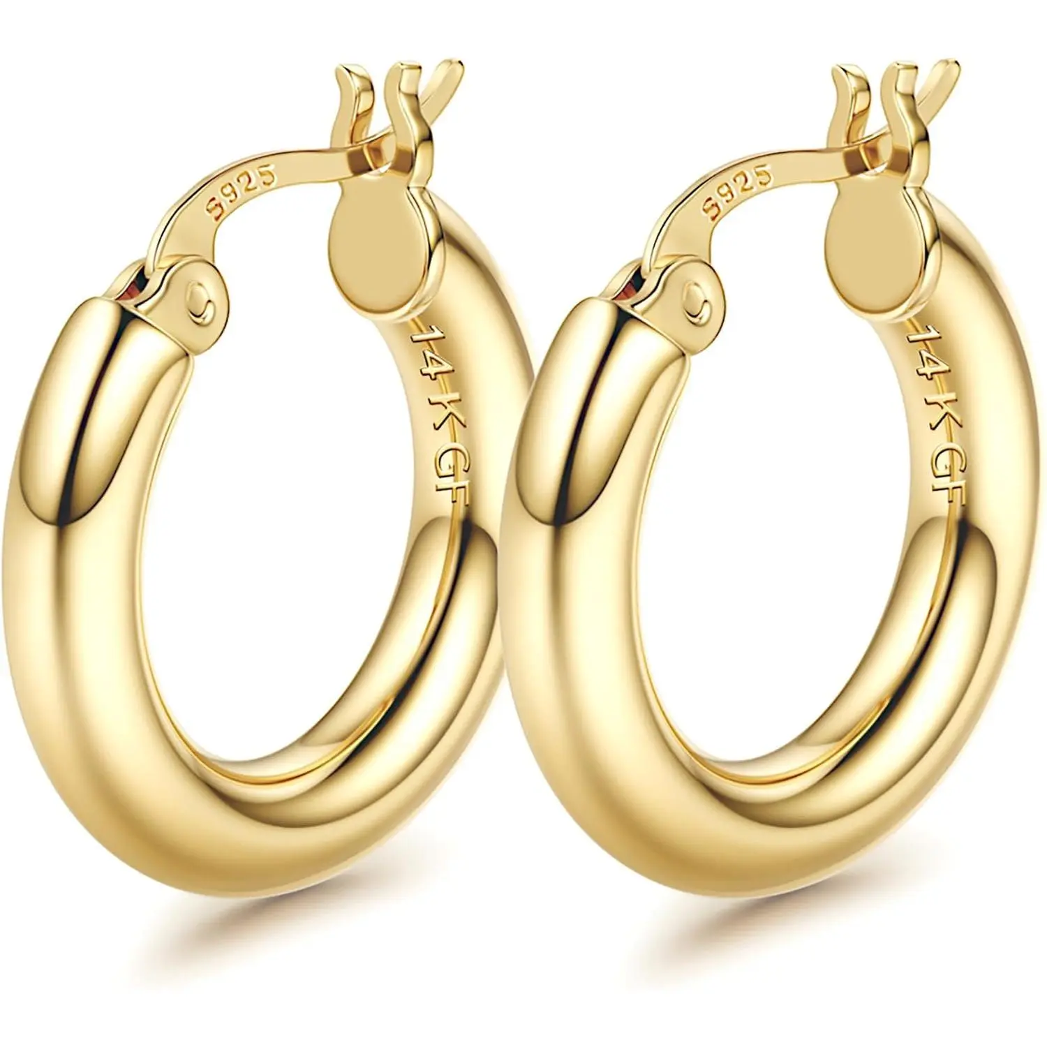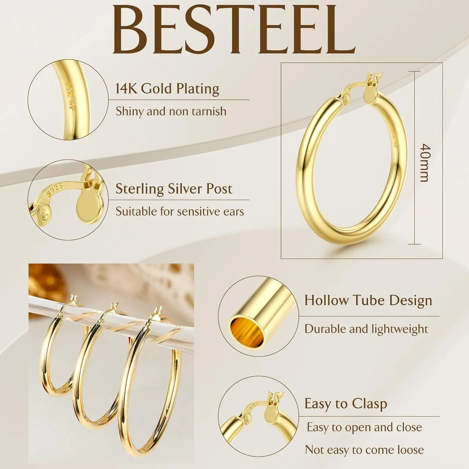Introducing the BESTEEL 14K Chunky Gold Plated Hoop Earrings for Women, featuring 925 Sterling Silver Post Hollow Tube Hoops. These large hoop earrings are designed to make a bold statement, perfect for adding a touch of elegance to any outfit.