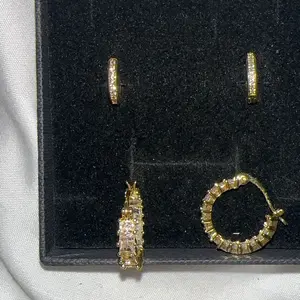 Earrings are adorable. They have a great shimmer and I love the earring stack. I do have a third hole spot for smaller earring, pictures are the two hoops. It also comes with three earrings total. Great gift for someone!