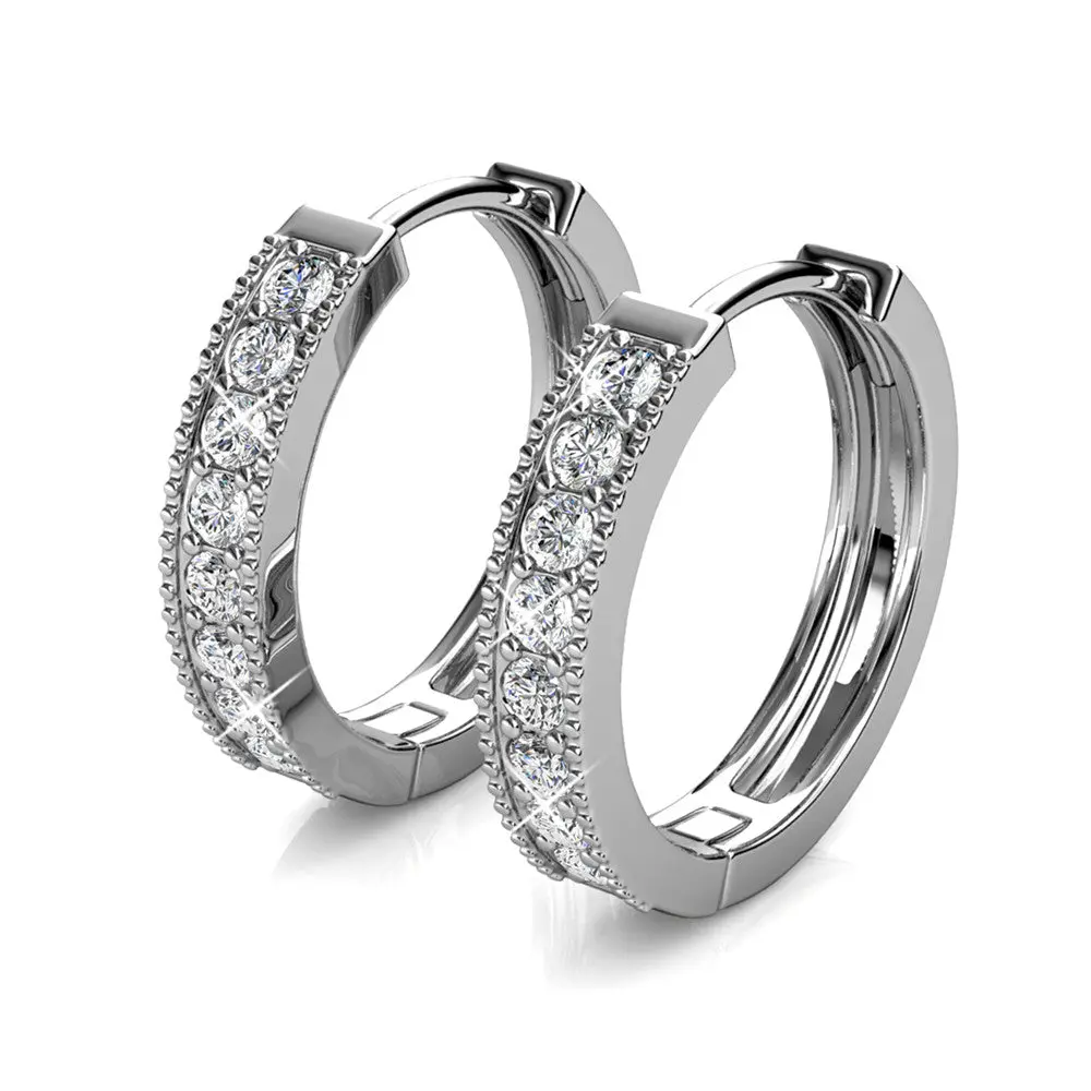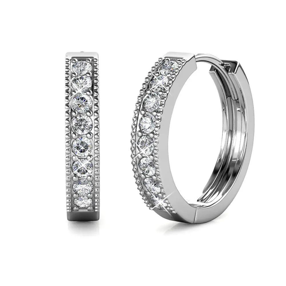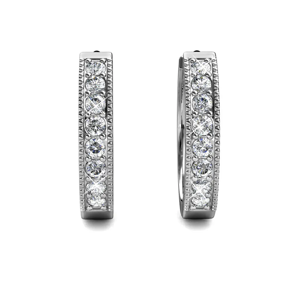 Lydia 18k White Gold Plated Hoop Earrings with Simulated Diamond Crystals