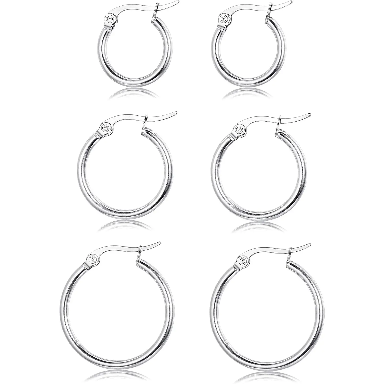These FUNRUN silver round hoop earrings are lightweight, hypoallergenic, and come in a set of 3 pairs with a size range of 10-20MM. They are a perfect choice for daily wear and make a great gift.