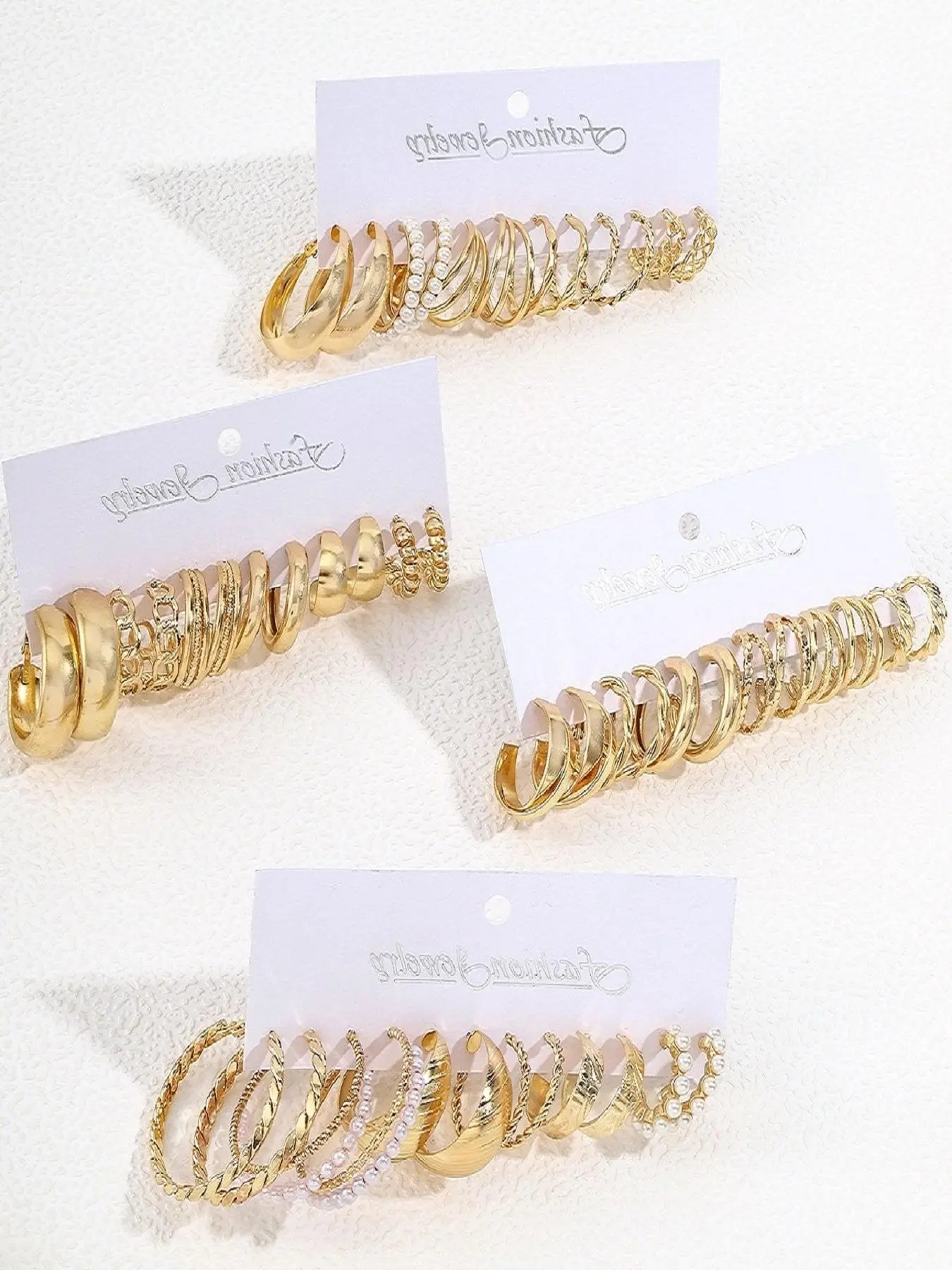 Such a great selection of earrings. They are all super pretty and I will be wearing them daily. I have worn them for only two days and showered with them on, but they haven’t tarnished yet!