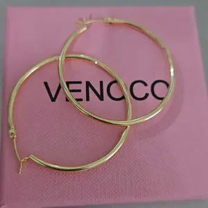 Nice dainty gold hoops. Perfect size! Not to big, not to small. I worry about the closure because it seems as though it might break easily. I guess I’ll find out when I wear them. I already had to adjust the closure because it was loose and wouldn’t stay clipped.