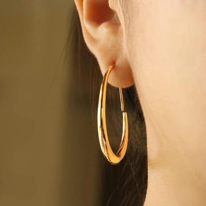 VENOCO Geometric light luxury vintage Dainty earrings for women, Large Oval Pull Through Hoop Earrings High Polished Statement Jewelry Gift for Women Teen GirlsVENOCO Geometric light luxury vintage Dainty earrings for women, Large Oval Pull Through Hoop Earrings High Polished Statement Jewelry Gift for Women Teen Girls