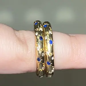 Super cute! The stones are hard to see that they’re blue in normal light because of how dark they are, but under flashlight they are blue. Easy to take on and off and not heavy. They feel solid and not cheap while still being comfortable.