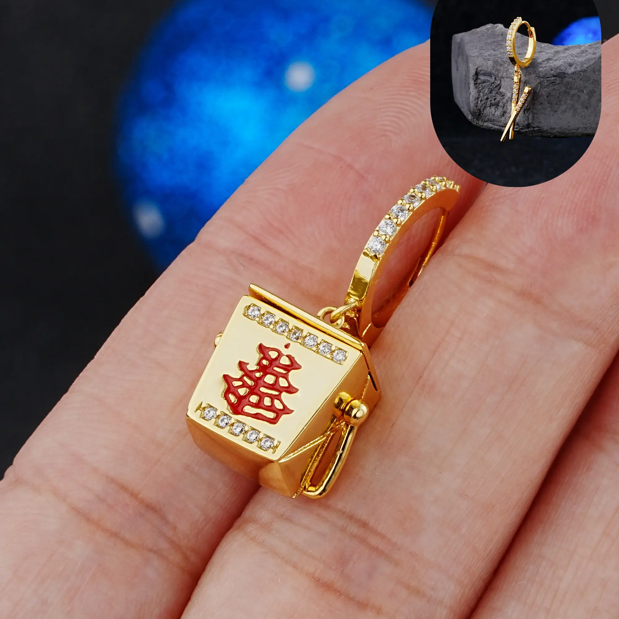 🌟 Oufer Chinese Take Out Container & Chopsticks 18K Plating Hoop Earrings 🌟