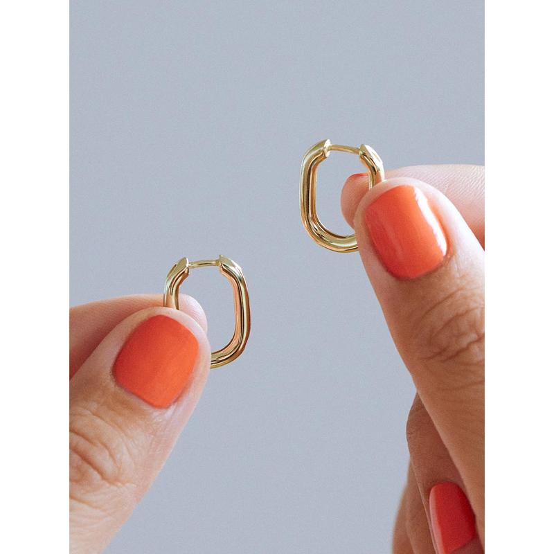 Not your average huggie hoop - the Rox Small huggies are so unique & fun!! These come in silver + two other sizes too 🫶 #ovalhoops #ovalhoopearrings #uniquehoops #uniqueearrings #goldhoops #minimalisthoops #minimalistearrings #tiktokshopjewelry #tiktokshopearrings