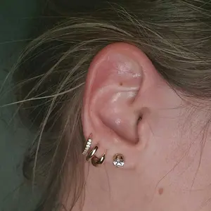 ive had these for i think a month or more now and i really love them. i only have my first and seconds pierced so i dont use all three hoops. but so far hasnt turned my skin green, rusted, or changed color which is hella nice. only thing is the thicker hoops have a loose-ish clasp so be careful