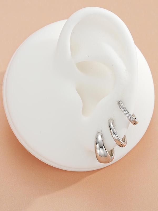 Women's Elegant Rhinestone Decorated Hoop Earrings, 3 Pairs Summer 2024 Trendy Geometric Design Hoop Earrings, Chic Gorgeous Jewelry As Gift for Girlfriend, Accessories for Women