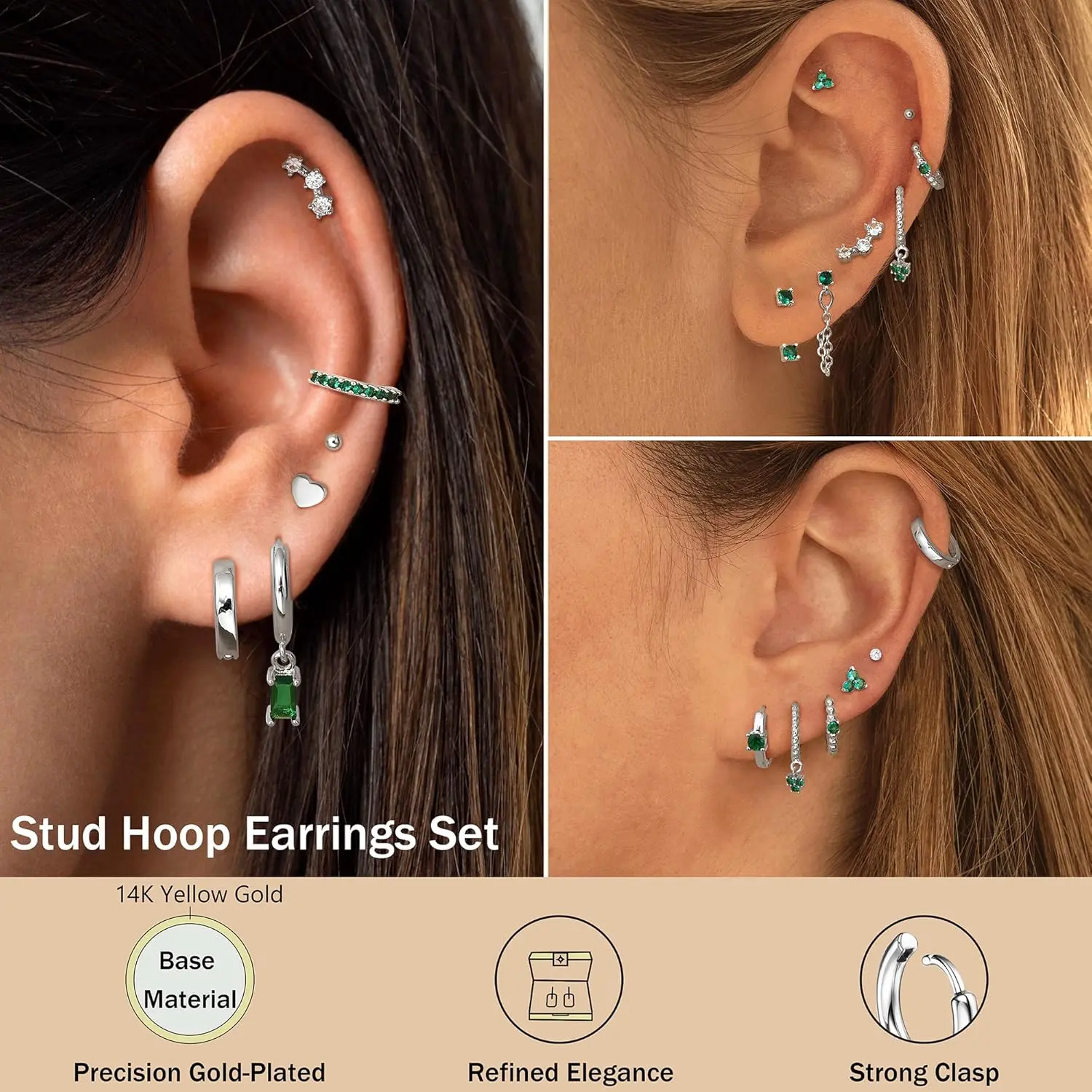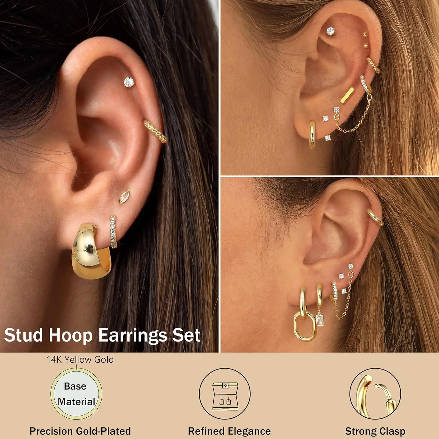 One set. Endless looks. ✨ 13 pairs of dainty gold hoops you’ll wear every single day.  #GoldHoops #DaintyJewelry #EverydayEarrings #JewelryStack #HuggieEarrings