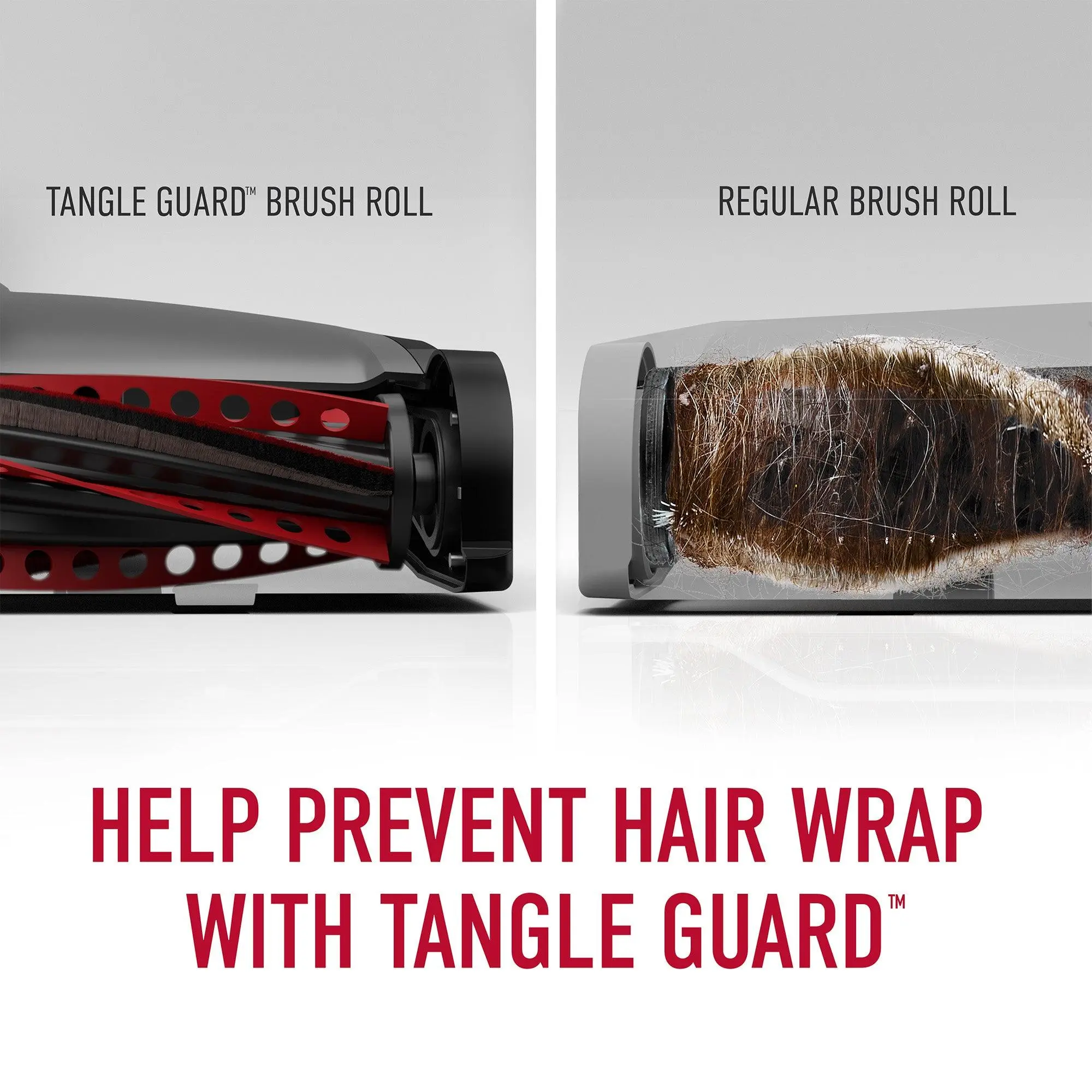 ·TANGLE GUARD: Easily clean multiple surfaces without worrying about hair (up to 9”) wrapping around the brush roll