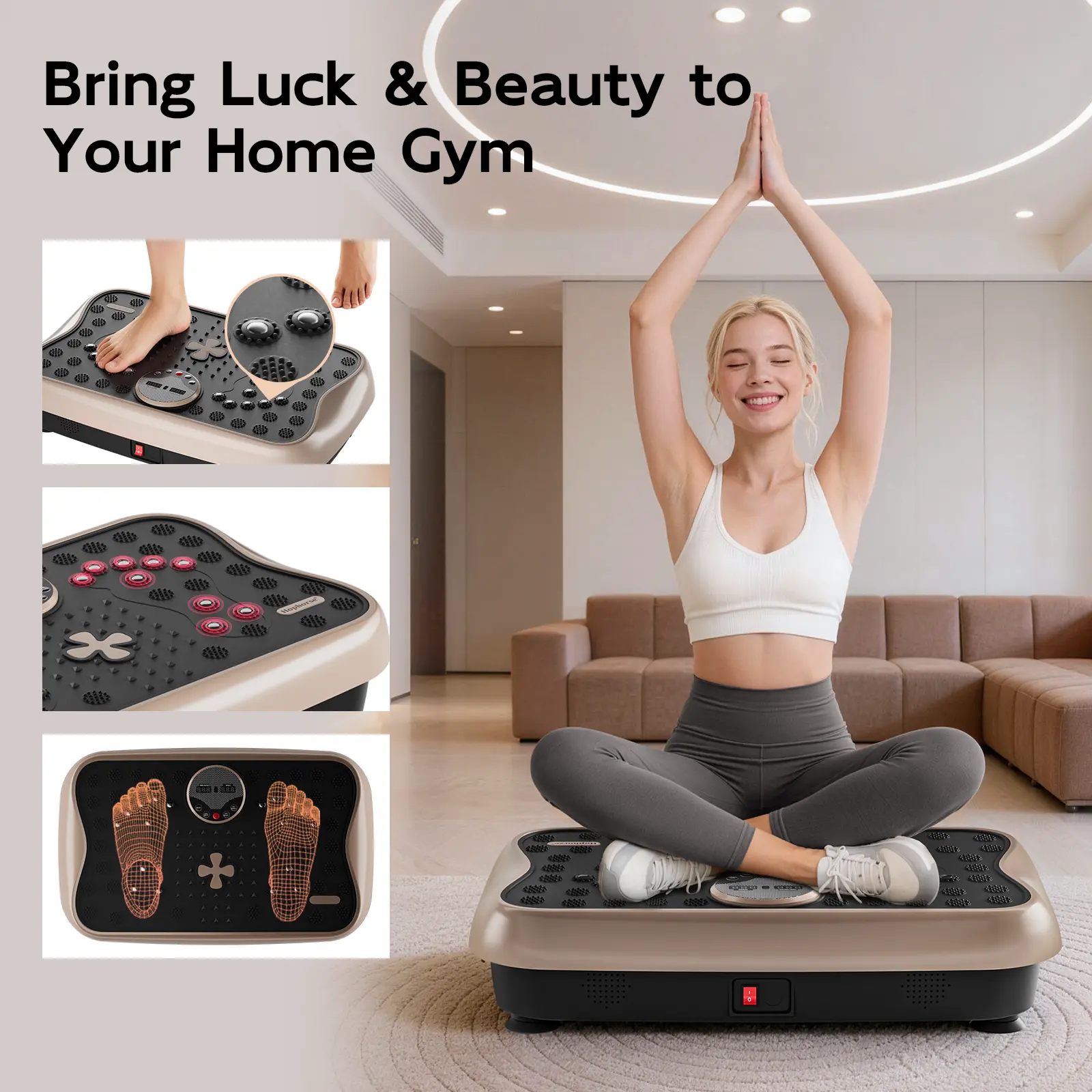 Rides smooth quite with strong vibes,great for circulation, cellulite, water retention. Weight loss highly recommend 💯, this is my 2nd vibration plate. I will no go without this in my daily routine. Mine came with resistance bands free gift which I use while on plate. Im so thankful for price