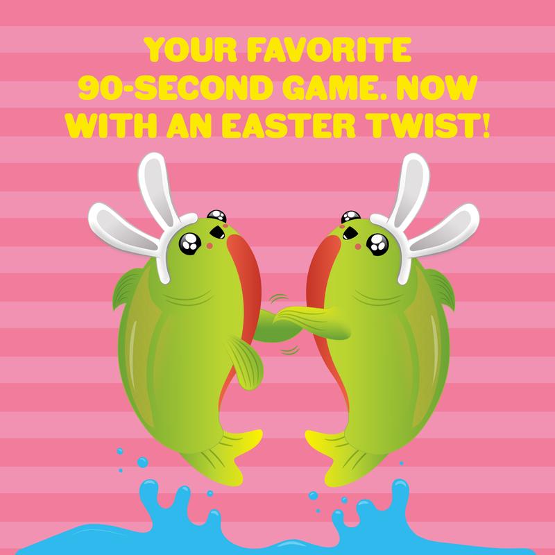 Hoppy Salmon is the ultimate Easter basket-filler and party game for kids and families. Each player has a stack of cards featuring simple actions, and the goal is to find a partner to match your action. Shout your move, find a match, and complete the action together before discarding your card. The first player to empty their stack wins!