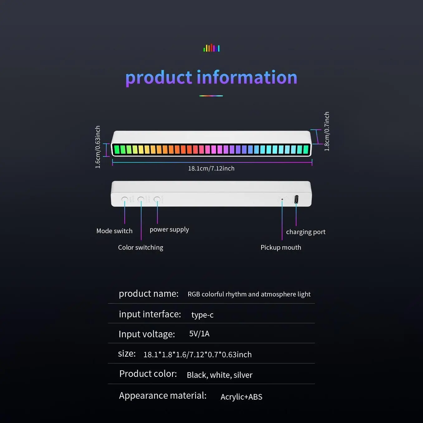Horizontal Vertical LED Equalizer Bar Sound-Reactive Multicolor Rechargeable Music Rhythm Display for Car Interior