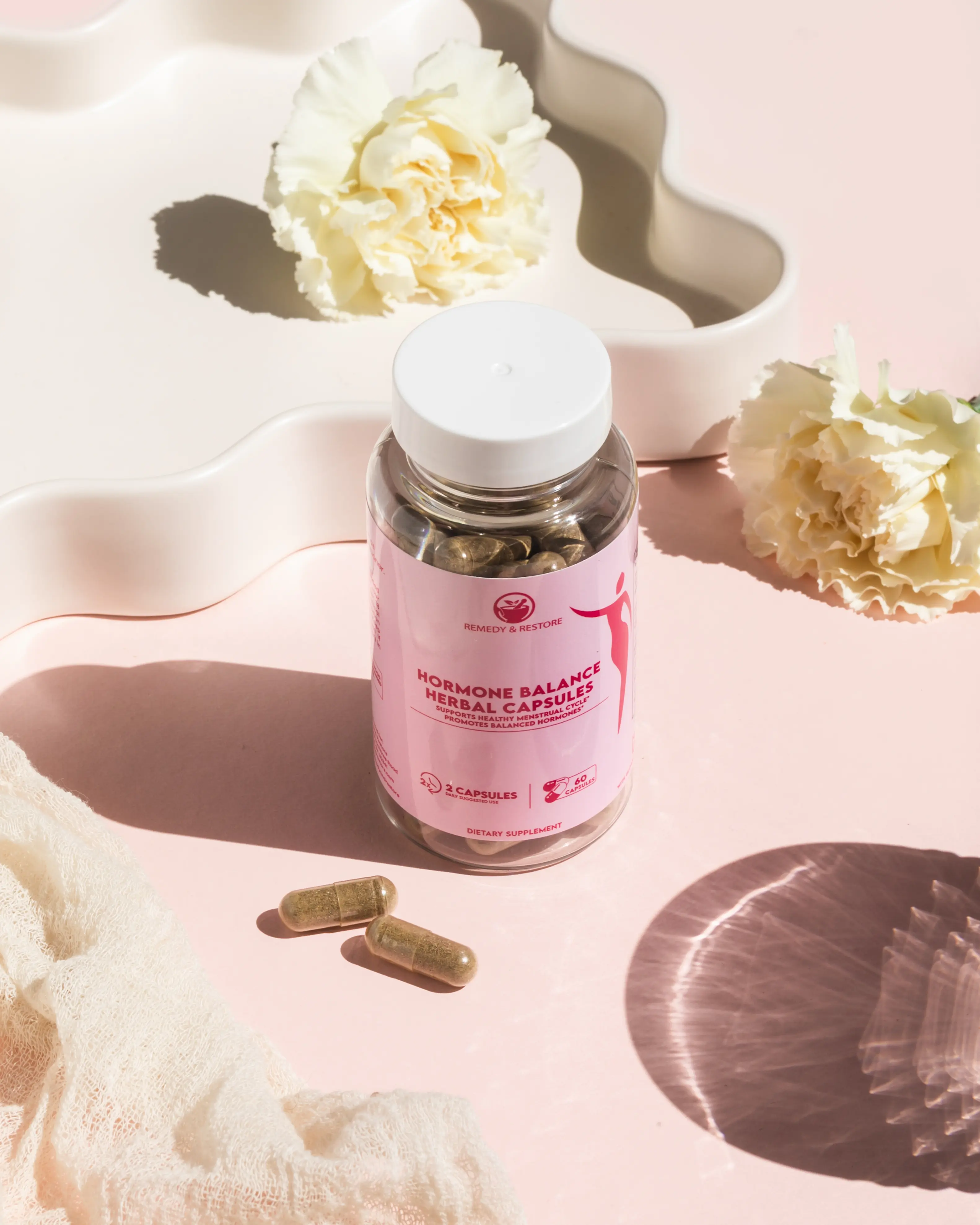 Support your body’s natural rhythm with Remedy & Restore Hormone Balance Herbal Capsules, a plant-based formula designed to promote hormonal equilibrium, a regular menstrual cycle, and overall well-being.