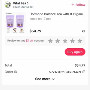 I cannot express how grateful I am for this product. I was going through so much prior to finding this Hormone Balance tea. I had been on my menstrual cycle since October of 2025 and I ordered it and got it by February 27 ,2026 . Drank one cup the very first day and the next day period was gone! 🥹