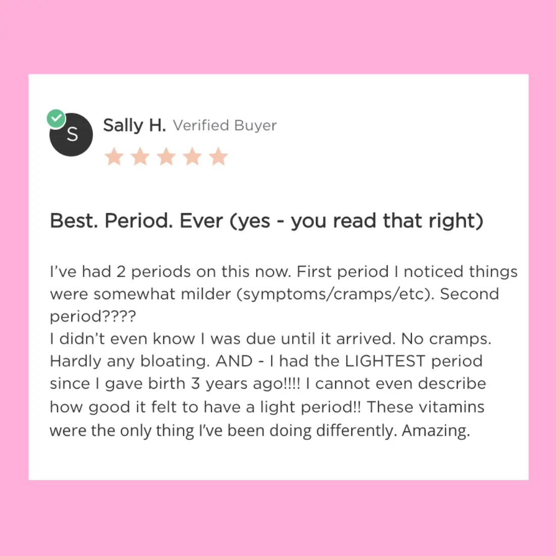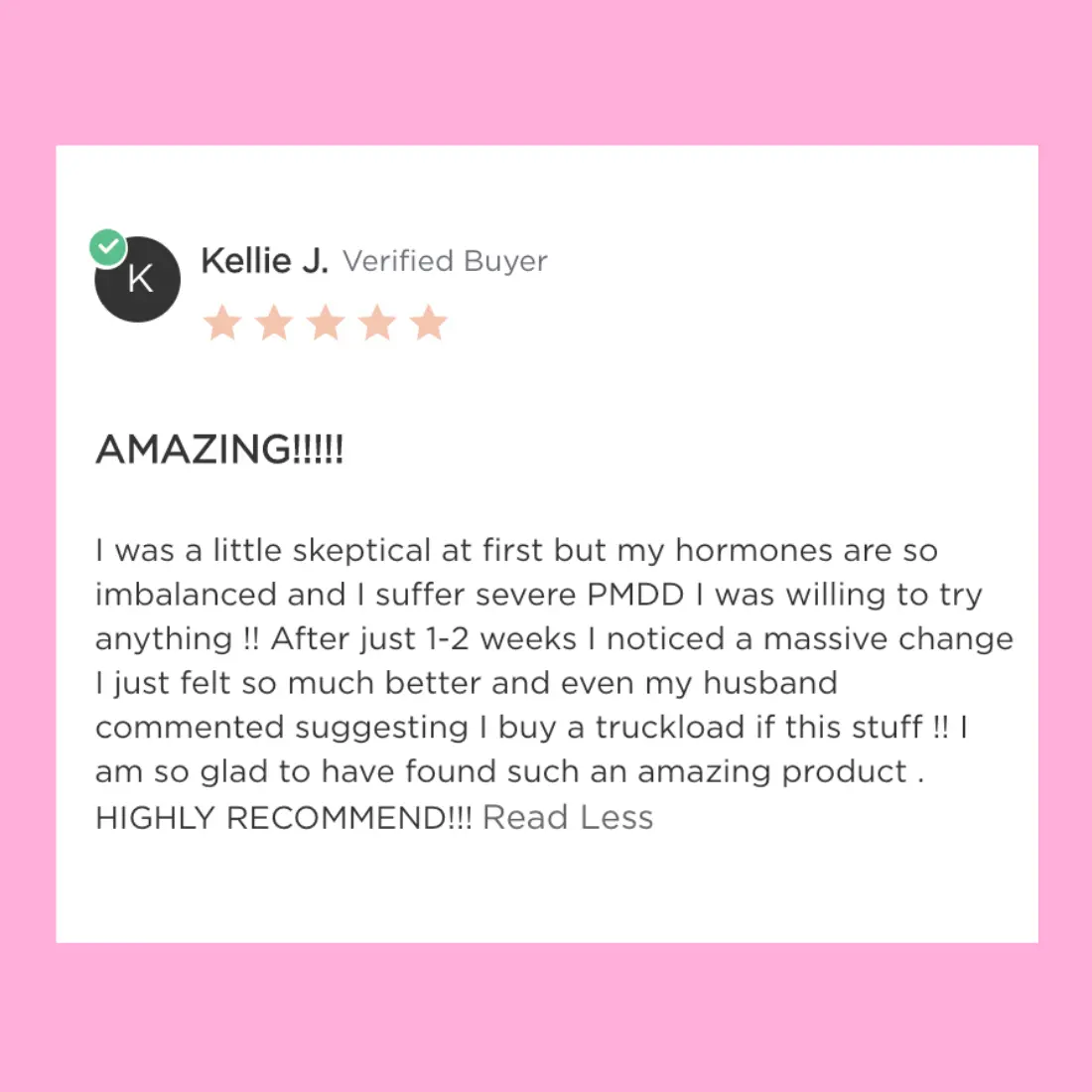 “Feeling less irritable and bloated during my week — and more stable overall.”