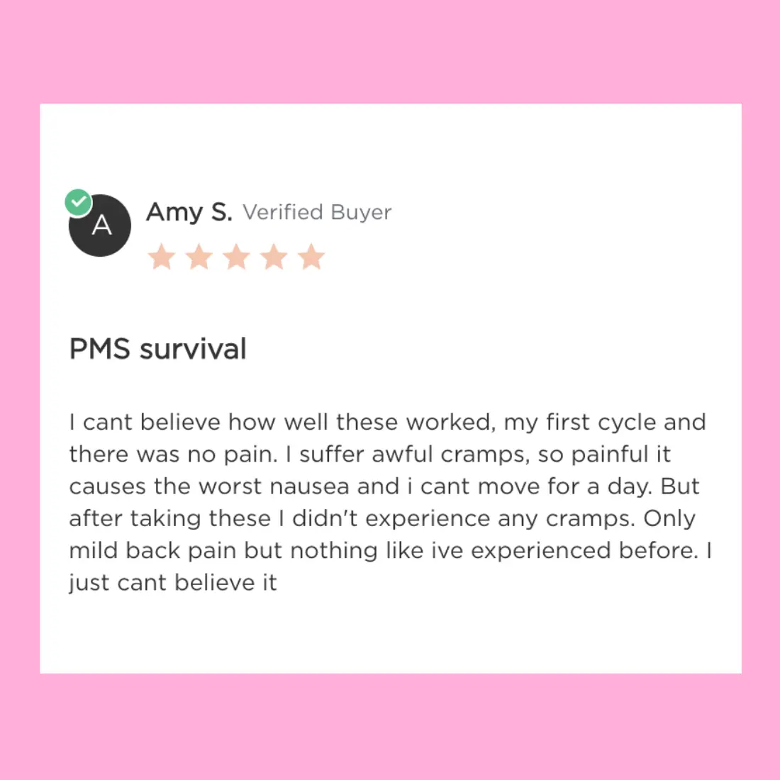 “This is the first formula that eases cramps and mood swings — gave me hope for monthly balance.”