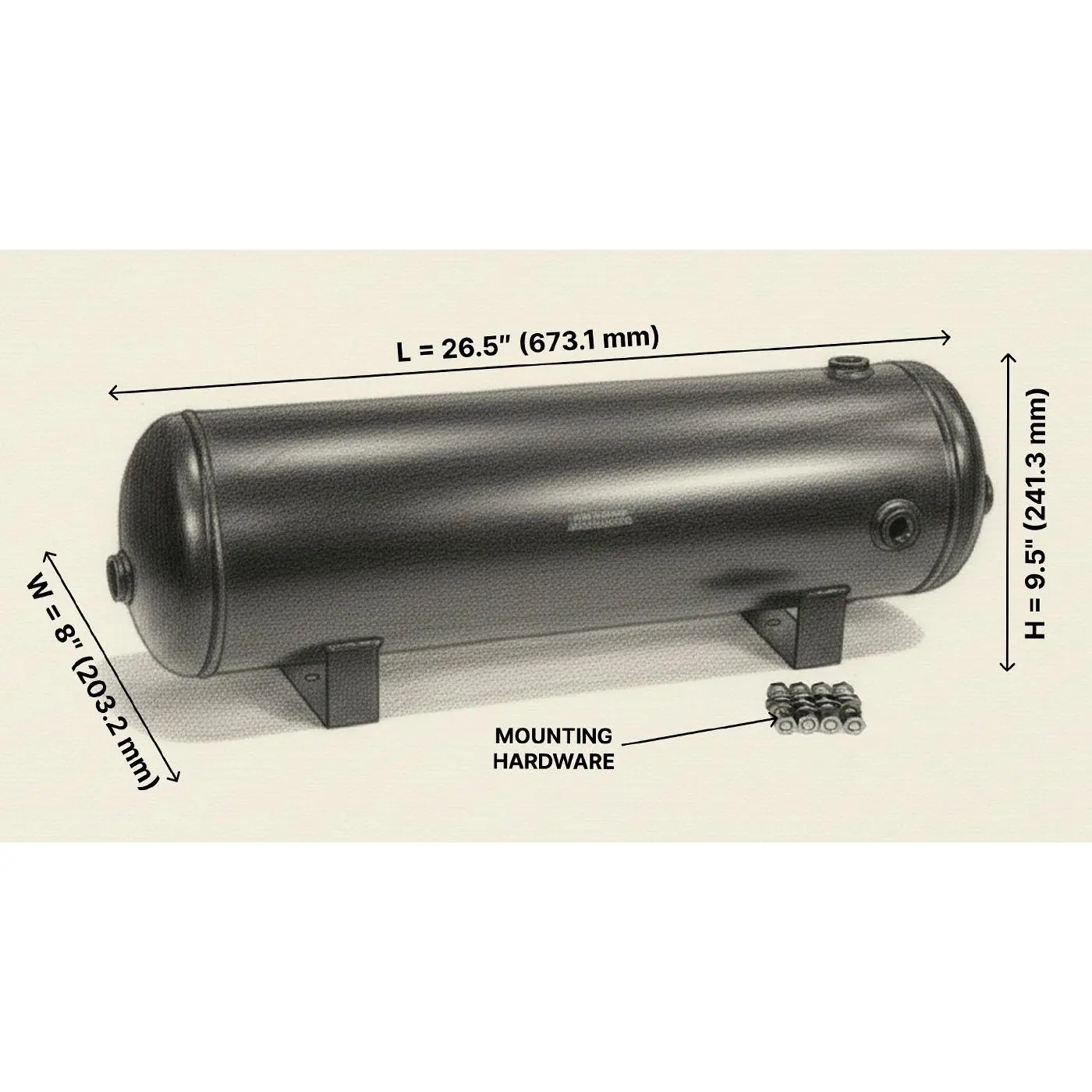 ·Optimized Versatility: With seven 1/2" NPT ports, tap into unparalleled flexibility for all your pneumatic desires. Whether it's dominating with a horn's blast, offering load support, or supplying air for air suspension, this tank is your ultimate ally.