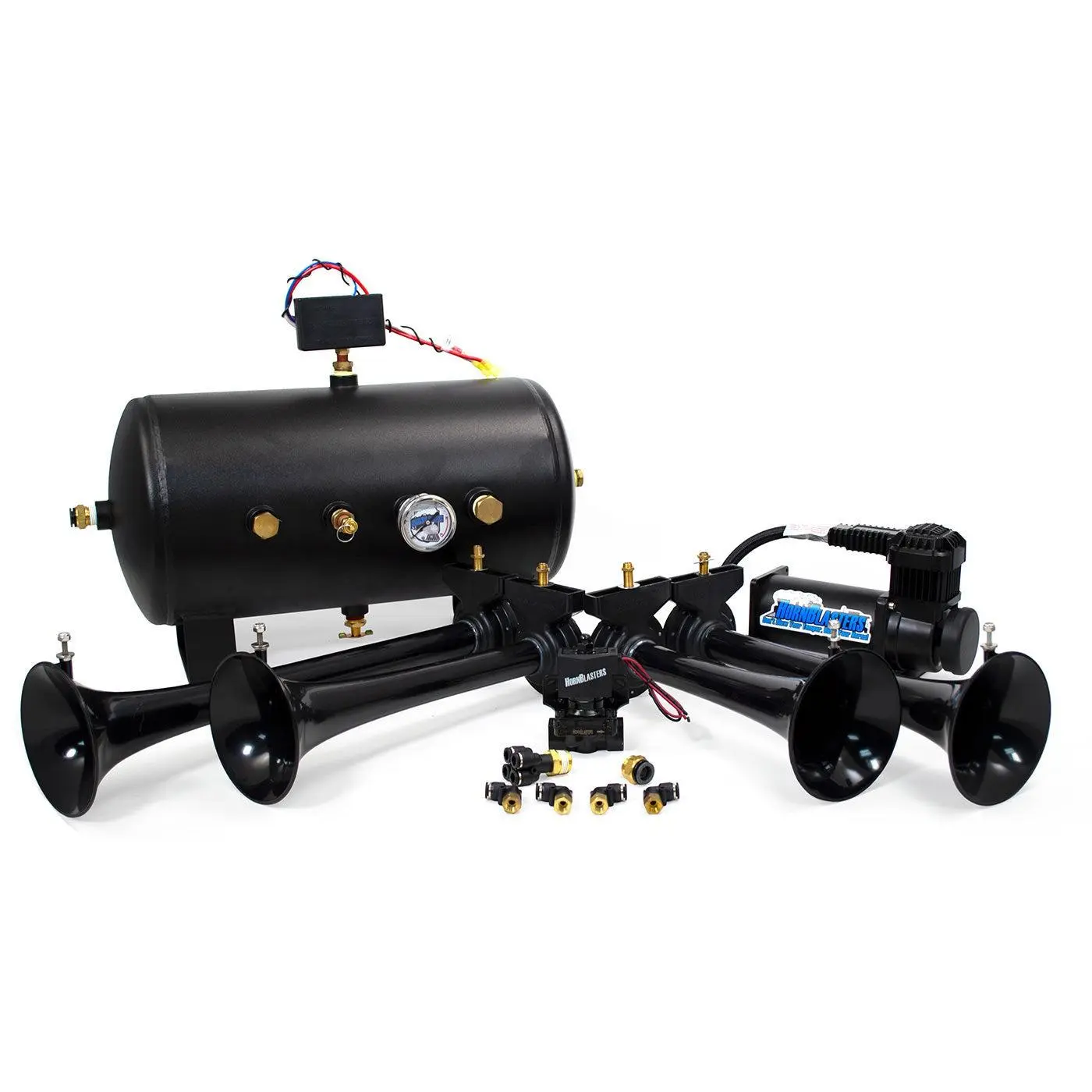 The Shocker XL 5-gallon train horn kit will blow you away with its price and sound! This is the best value we have for a full Shocker XL based kit. If you are asking yourself "What's the loudest horn you make?" and also "What's the best value for the money?" you've just found the answer.