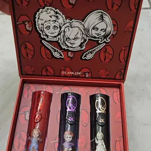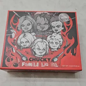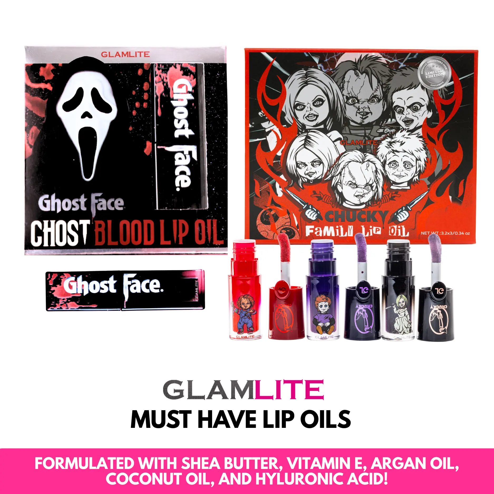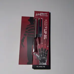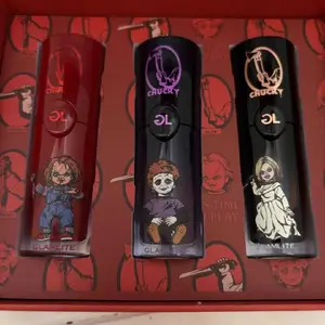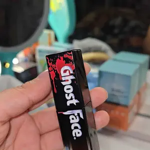 Ghostface lip oil was kinda as described. It's advertised as "deep blood red shade" but I think they missed the red. It's a burgundy color. I got multiple and each had the same color. All were sticky with swatches and on lips. Kinda sucks but I collect Ghostface items so on the shelf it goes.