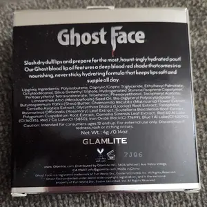 My first product I’ve purchased from Glamlite! Super happy with Ghost Face Lip Oil, I purchased it during the TikTok live show! It was the Ghost Face Lip Oil debut, its soft not sticky with light red hue.