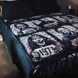 This blanket is amazing and super soft it's absolutely gorgeous. I tell everyone to order one if you're into horror movies this is definitely for you.