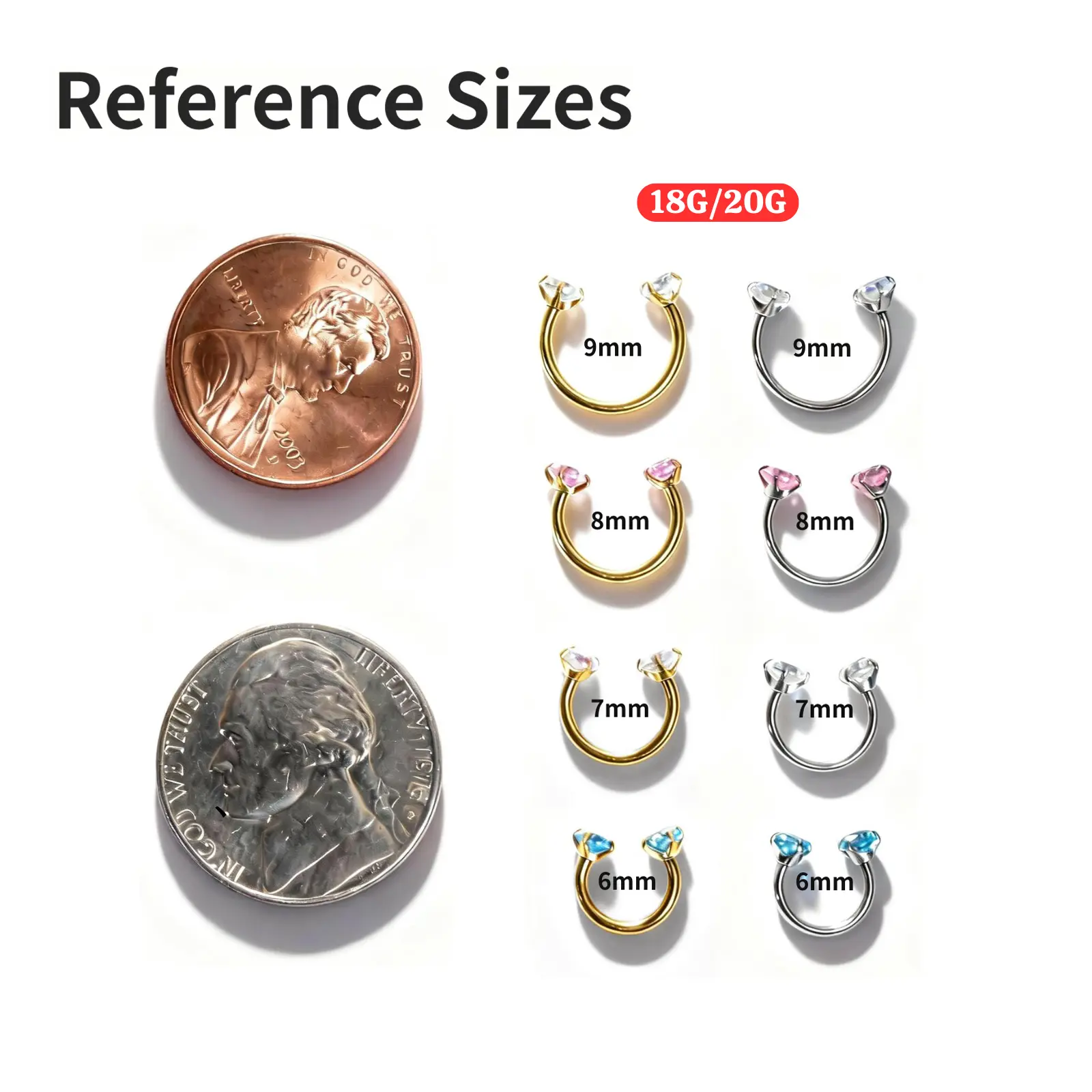 🌟 Material & Gem Details ✨ - Material: F136 Titanium Alloy - Gem: 5A Cubic Zirconia - Type: Internally Threaded - Hoop Size: 6/7/8/9mm (4Pcs) - Gem Size: 3mm - Gem Colors: Clear, Pink, Blue, Purple, Red, Aurora (6Pairs=12Pcs)
