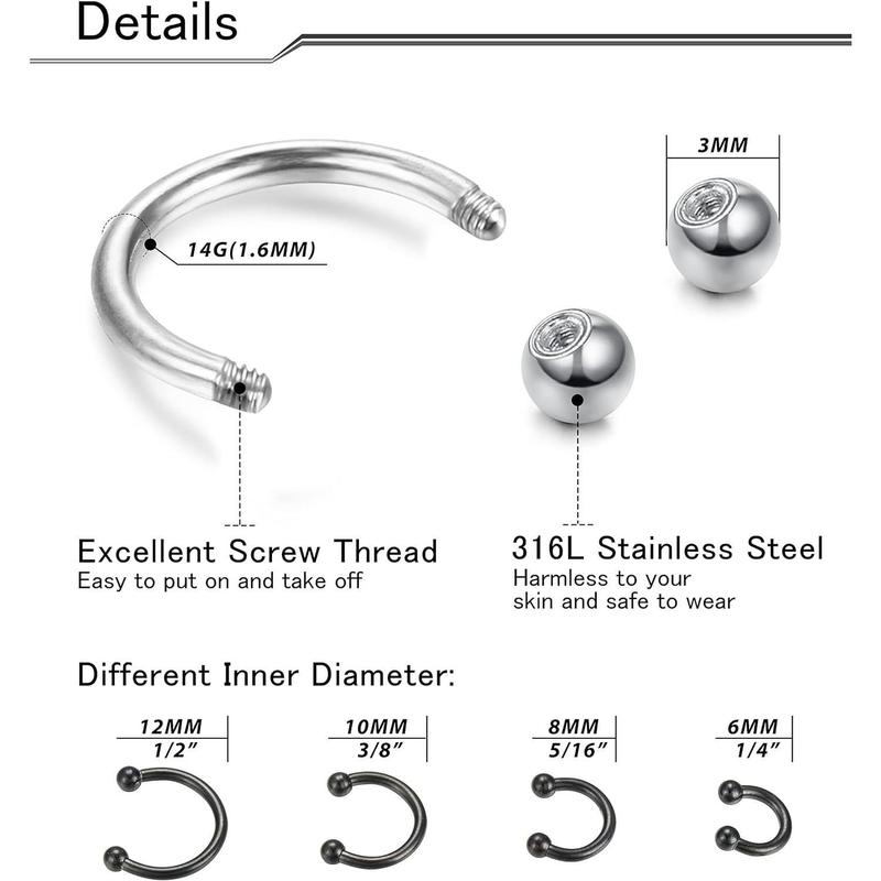 ·Multiple sizes available: With sizes ranging from 6mm to 12mm, you can easily find the perfect fit for your specific piercing needs.