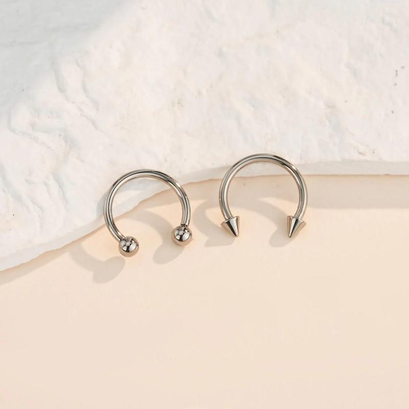 5. Oufer 2Pcs 14G Titanium Internally Threaded Spike & Ball Ends Horseshoe Septum Nose Ear Piercing Ring Inner Diameter 6mm-12mm High Quality Jewelry