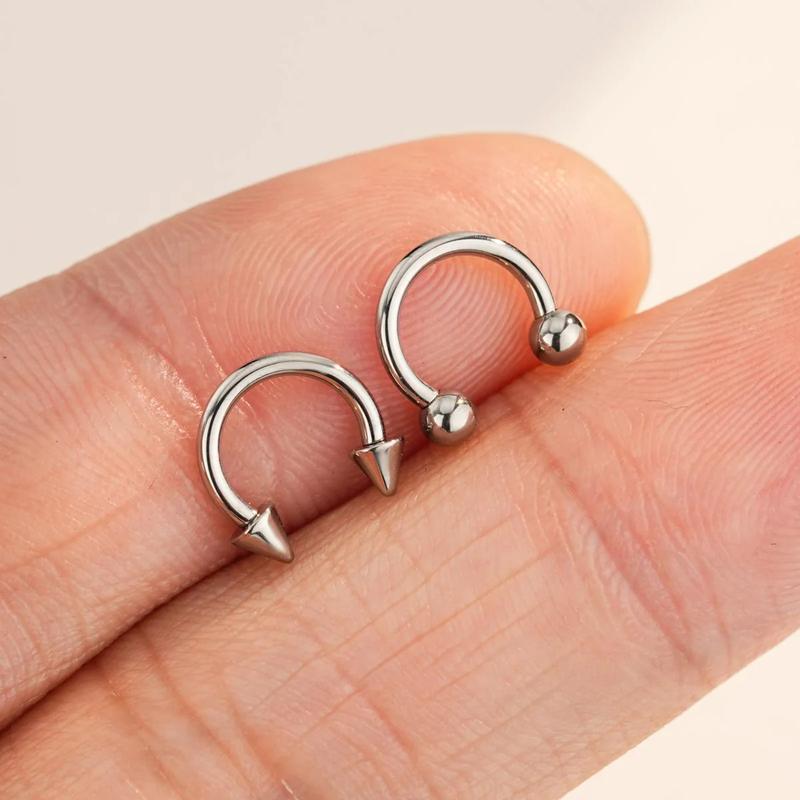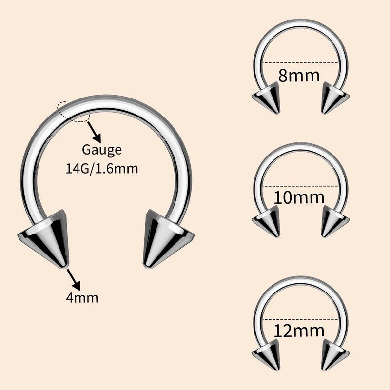 Oufer 2Pcs 14G Titanium Internally Threaded Spike & Ball Ends Horseshoe Septum Nose Ear Piercing Ring Inner Diameter 6mm-12mm High Quality Jewelry