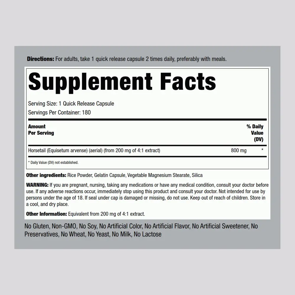 Piping Rock Traditional Horsetail Herbal Supplement Capsules - 800 mg, 180 Count Bottle, Non-GMO, Gluten-Free Healthcare Supplement