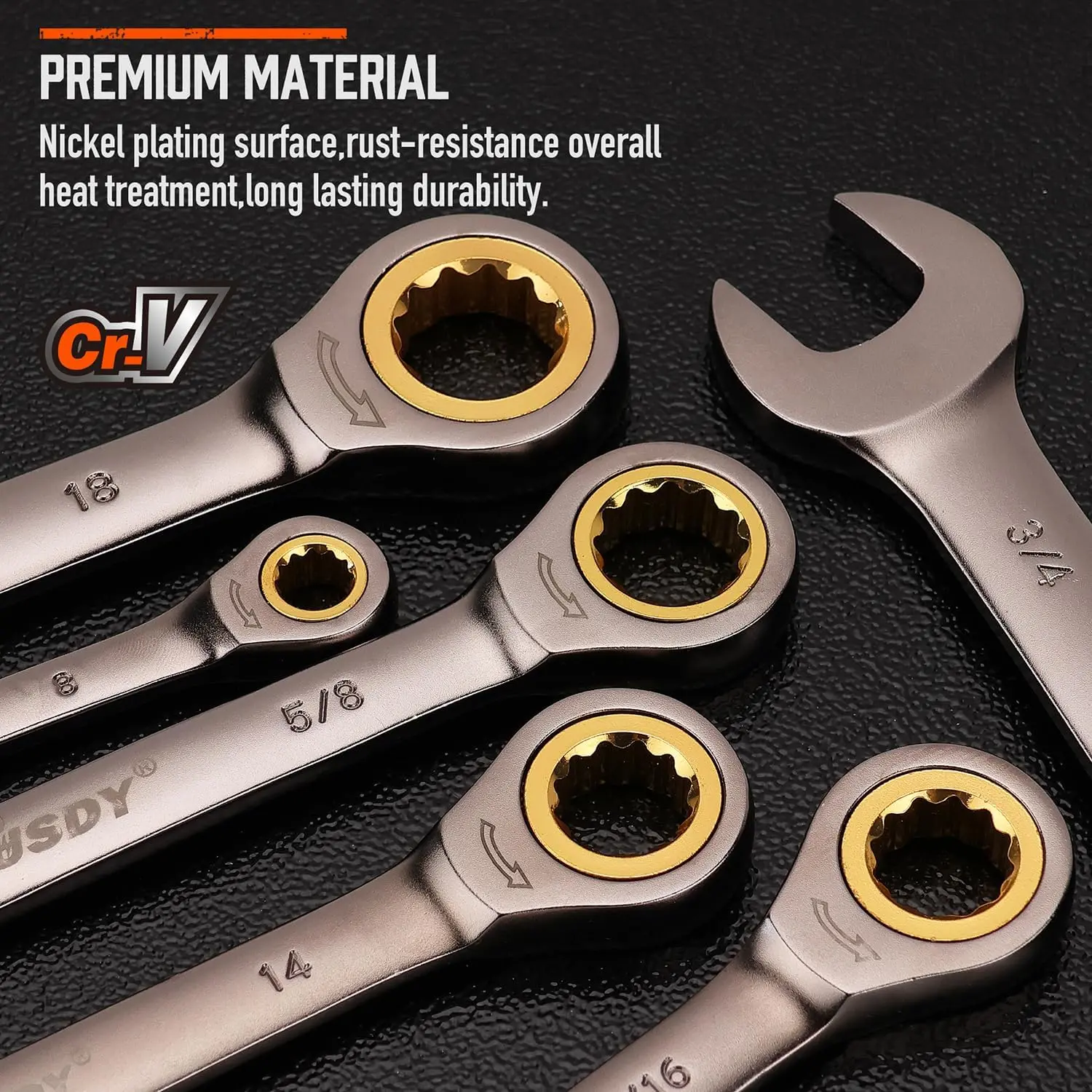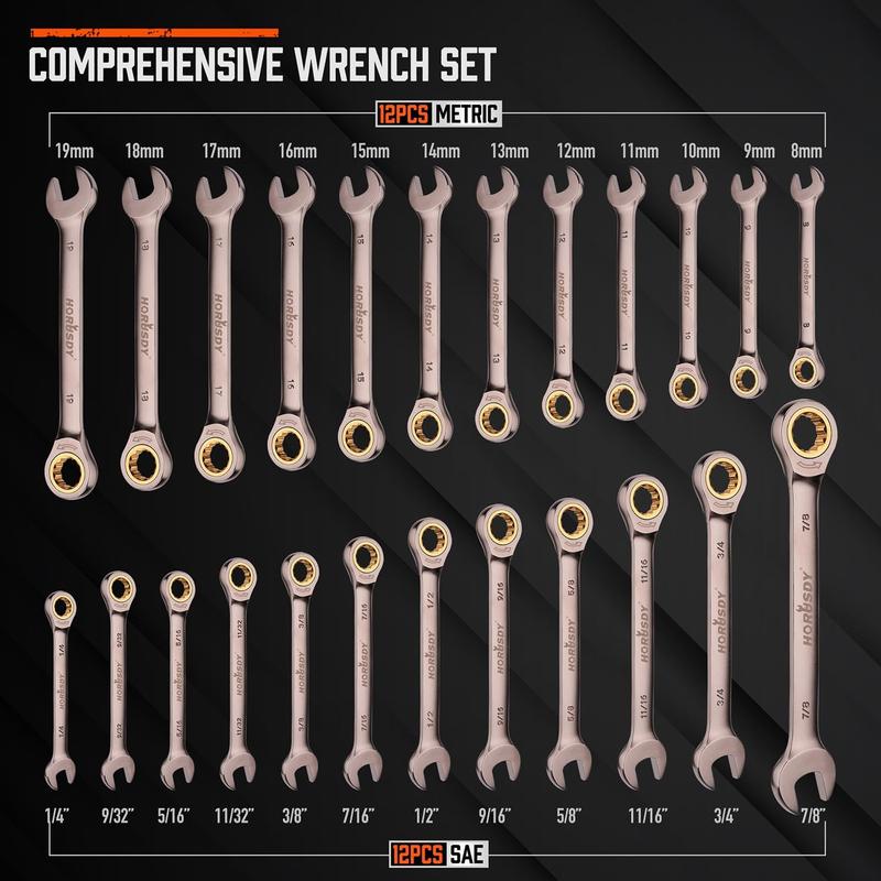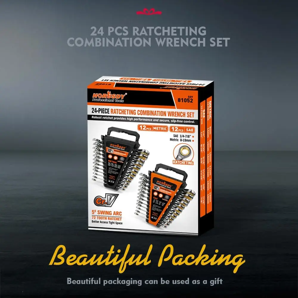 ·Ratcheting Wrench is Made of High-Strength Chrome-Vanadium Steel Construction to Ensure Durability and nickel plated for durability, these wrenches will deliver years of consistent performance.