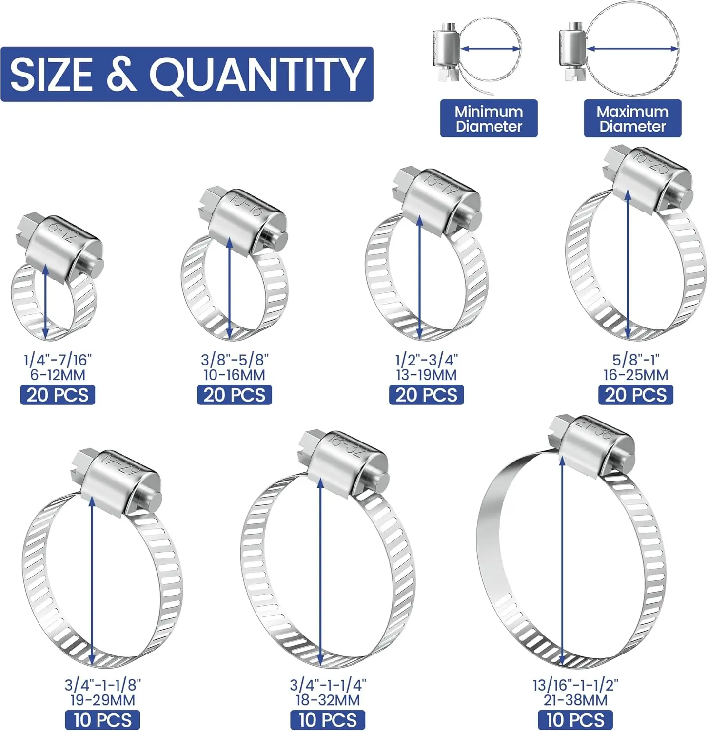 Excellent product for those last minute repairs requiring a particular size of clamp. Various choices to tackle any auto or home repairs. High quality and definitely I recommend for everyone to have at home to tackle those unexpected repairs.