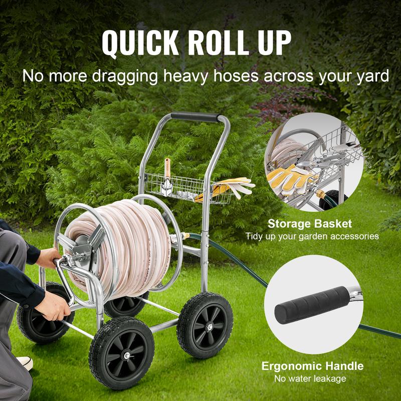 ·Effortless Roll-up Hose: The hose cart is equipped with a non-slip handle, making it easy to wind up the hose after use. This feature eliminates the hassle of manually coiling and organizing the hose, saving you time and effort while keeping your hose tangle-free and neatly stored.