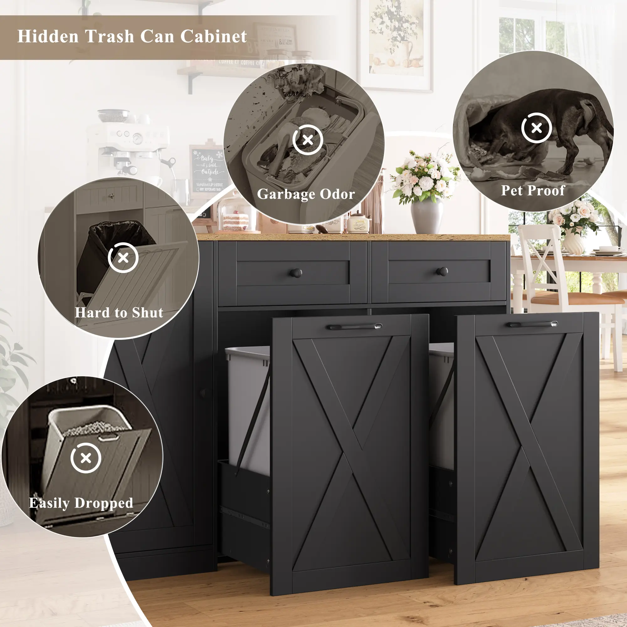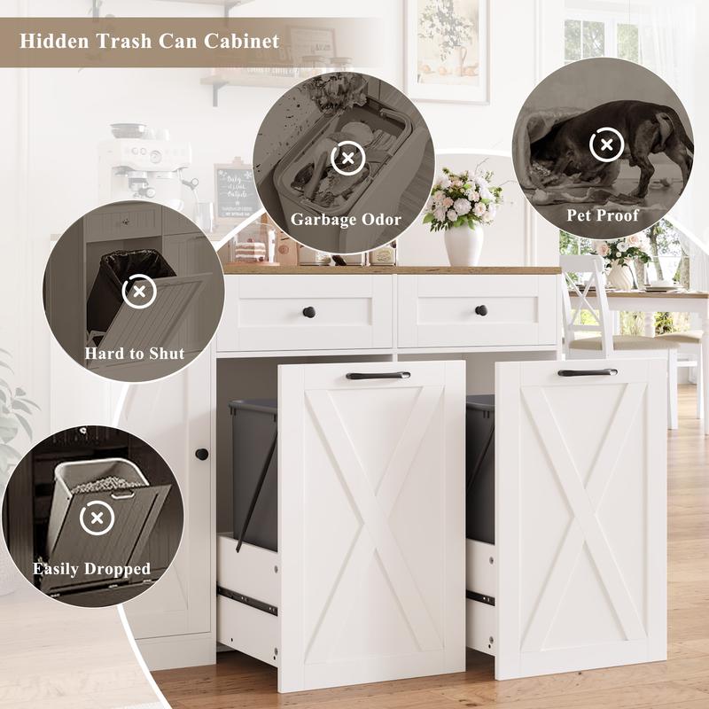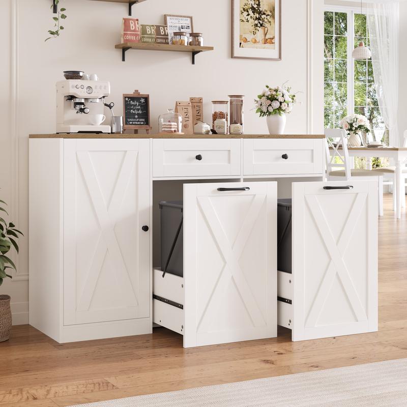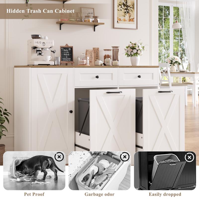 ·Multitasking Marvel: Except being used as a kitchen double trash can cabinet, it can also serve perfectly as a sleek coffee bar station during gatherings, a living room buffet sideboard for snacks and pet supplies, or a laundry hamper cabinet for blankets and toys