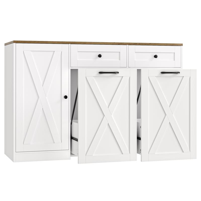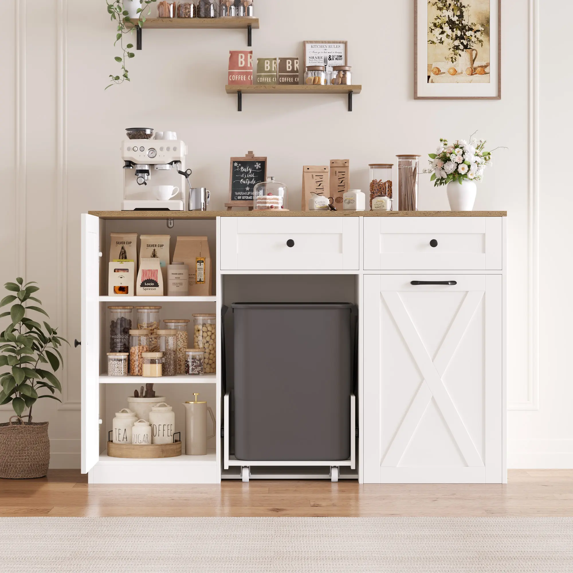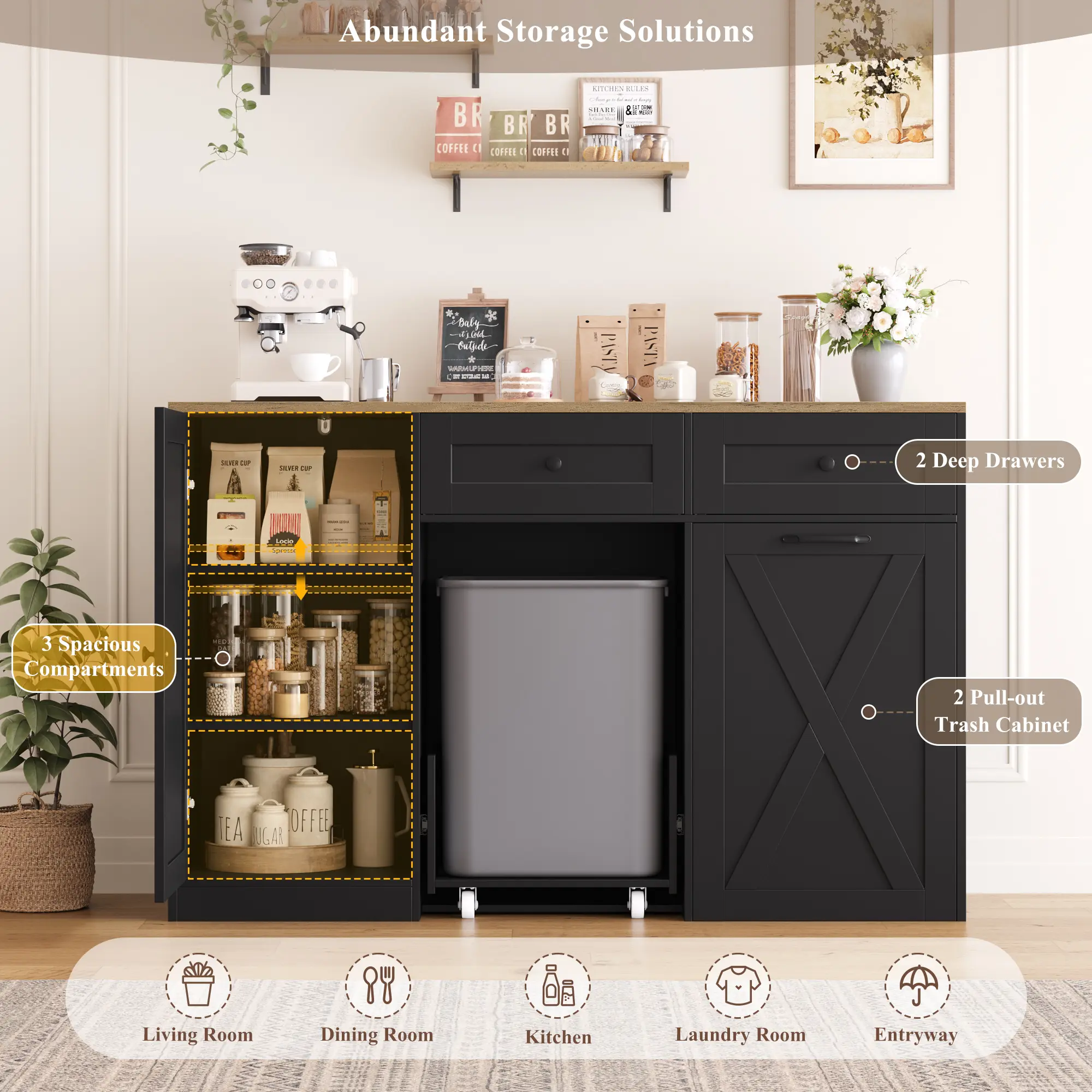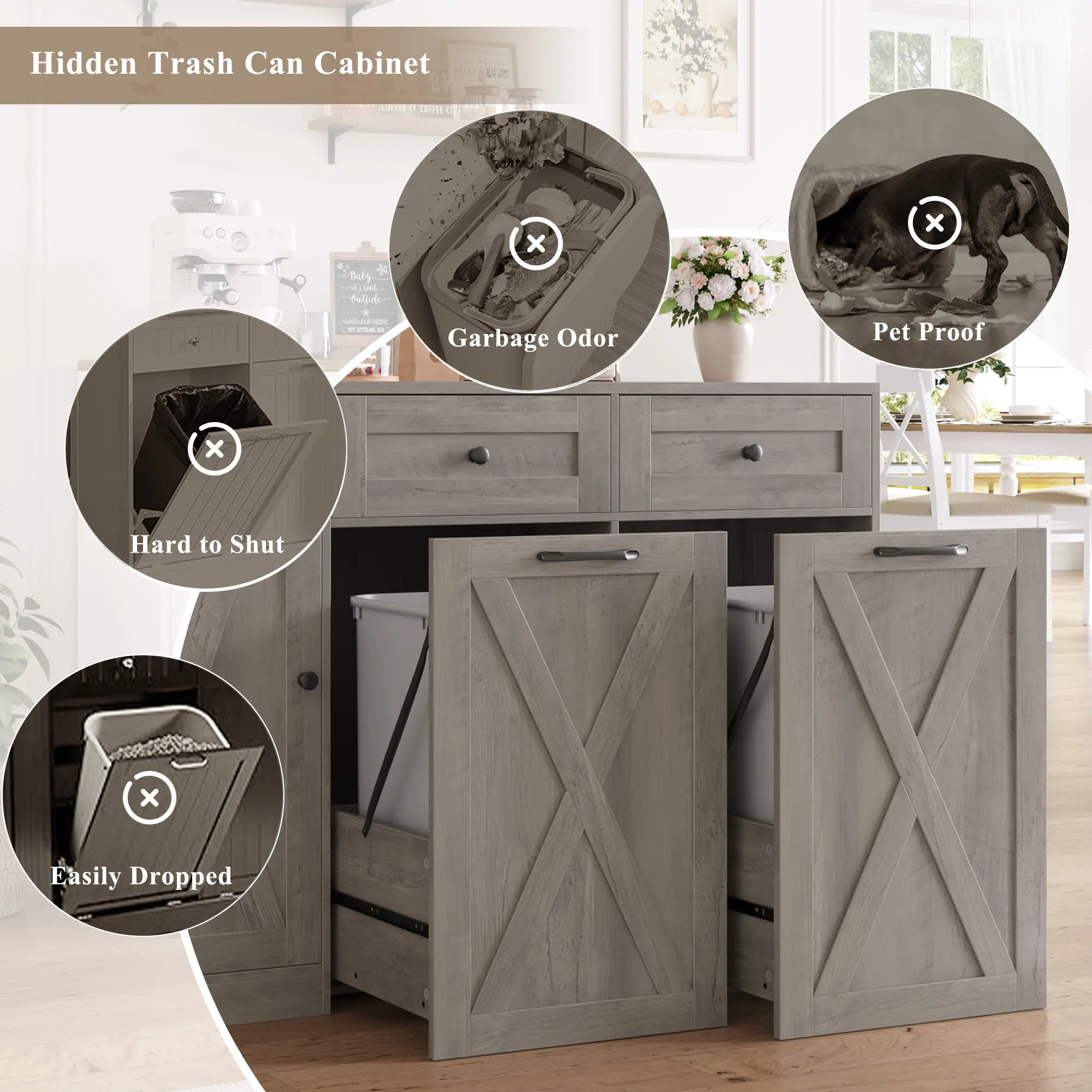·Multitasking Marvel: Except being used as a kitchen double trash can cabinet, it can also serve perfectly as a sleek coffee bar station during gatherings, a living room buffet sideboard for snacks and pet supplies, or a laundry hamper cabinet for blankets and toys