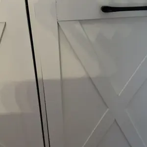 ·Modern Farmhouse Glamour: Featuring stylish X-trim barn doors, a natural wood-textured top and black metal handles, this white pull-out garbage cabinet combines rustic charm with contemporary flair in a fantastic way which complements any decor while adding warmth and character
