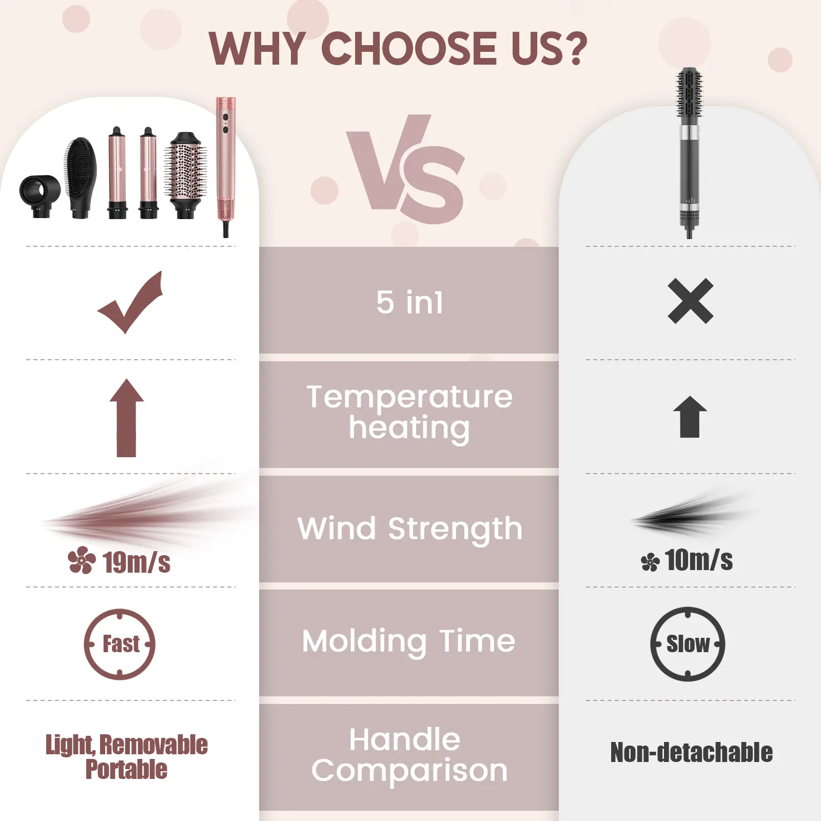 ·Intelligent Heat Control: 3 temperature modes and 2 wind speeds for customized styling.