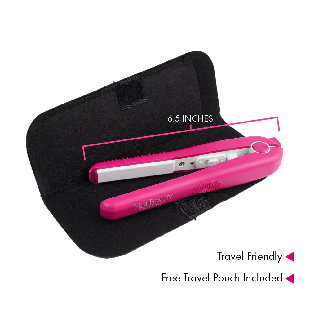 I absolutely love this Hot Beauty Professional Ceramic Mini Flat Iron! __ The compact size makes it perfect for traveling, and the ceramic technology ensures that my hair stays smooth and frizz-free. The vibrant purple design adds a stylish touch to my hair routine, and it's super easy to use! What impressed me the most is how quickly it heats up, making it ideal for those busy mornings when I need a quick touch-up. It leaves my hair looking shiny, sleek, and feeling soft all day. This flat iron has definitely become my go-to styling tool! __