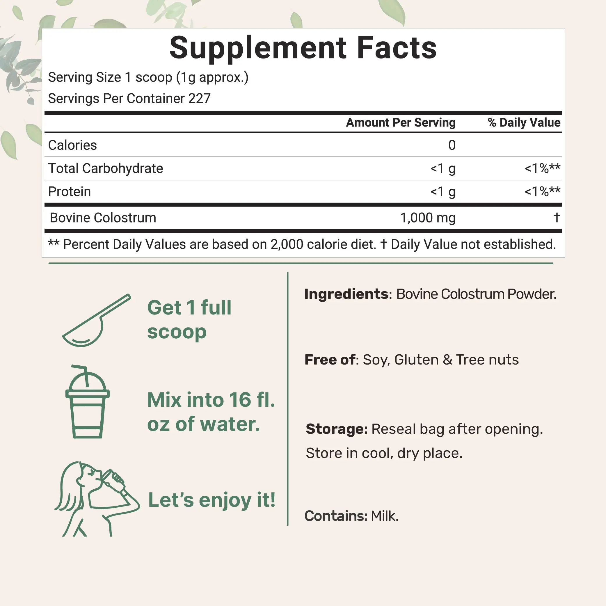 ·Each pouch includes easily mixable, unflavored colostrum powder. Simply add 1 scoop to 1 cup of warm water for a sweet and creamy raw flavor.