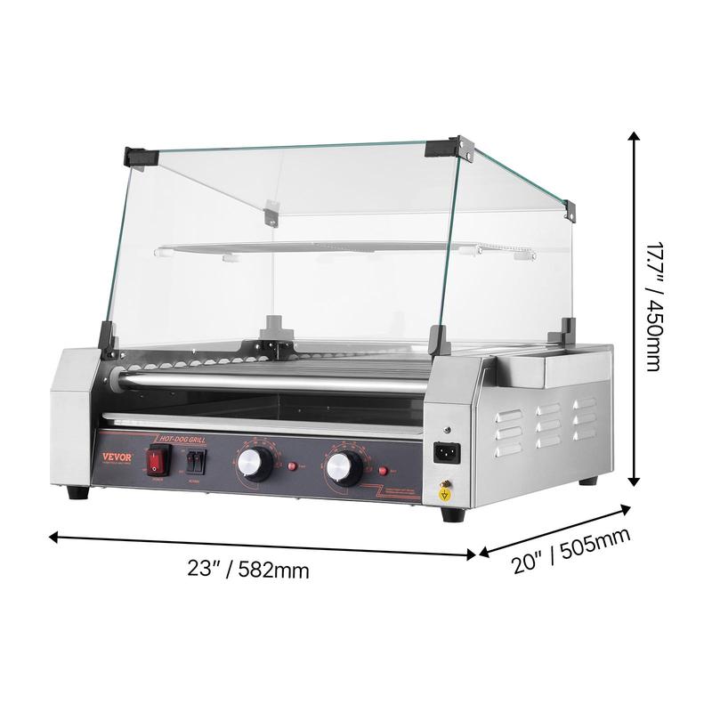 • Built to Impress & Last: Built with a durable, sleek stainless steel frame, this commercial hot dog roller provides not only a modern look but also long-lasting performance. The glass hood is offered to block dirt and keep food warm, thus shortening cooking time. The removable drip tray keeps your kitchen clean and washing to a minimum