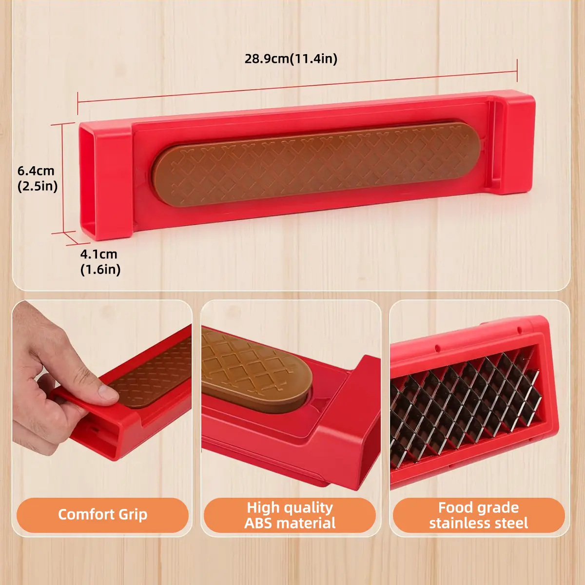 Elevate your grilling with this Hot Dog Slicer Criss Cross! Crafted from Acrylonitrile Butadiene Styrene and Stainless Steel, it's ideal for BBQs, picnics, and outdoor cooking. The one-touch release ensures easy handling. Its compact size measures 11.4"L x 2.5"W x 1.58"H, making it convenient for any kitchen or backyard. The food-grade Stainless Steel blade slices hot dogs effortlessly.