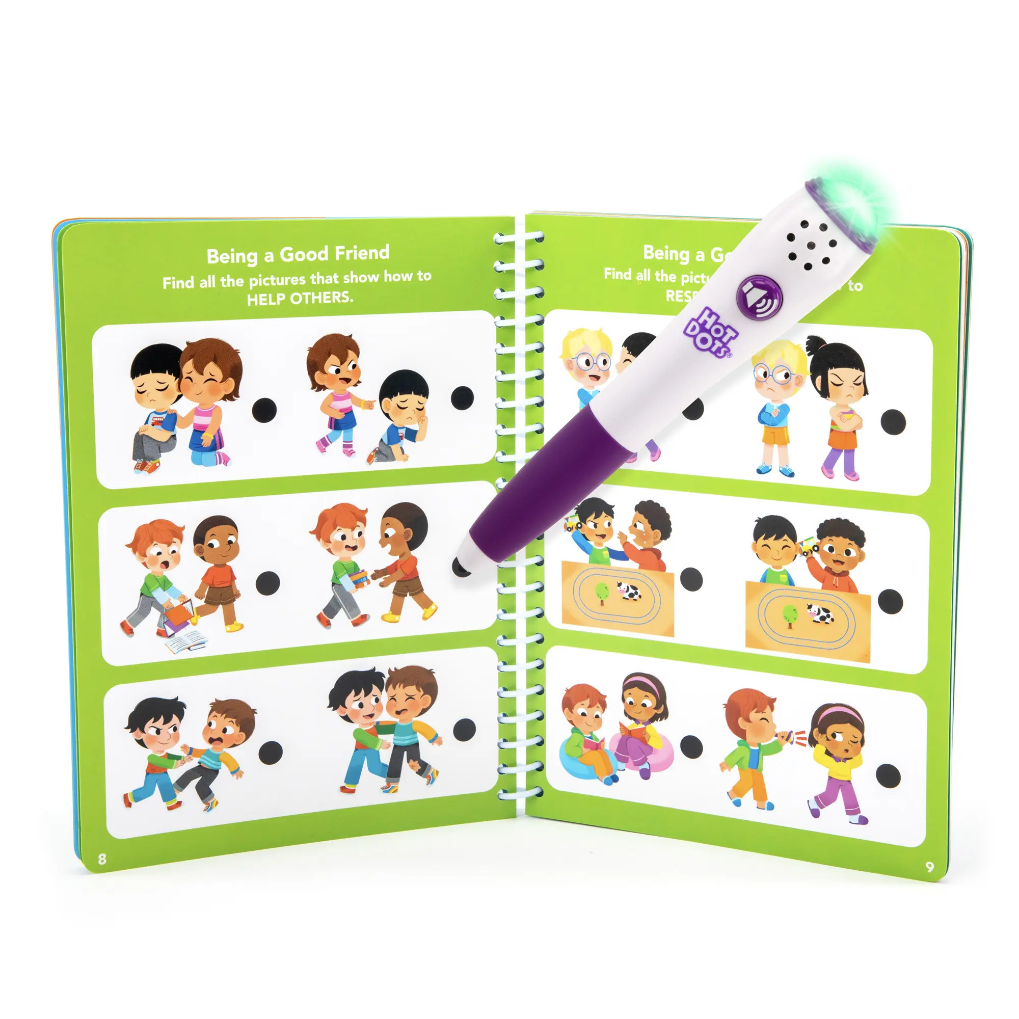 Β·IMMEDIATE FEEDBACK: Press the interactive Hot Dots Pen to any answer dot to receive instant feedback β green lights and congratulatory sounds for correct responses, red light and gentle redirection for incorrect answers