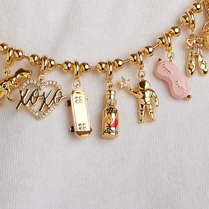 Tiny CHARMS, Major Versatility All of our charms are meant not only for our bracelets, but for existing necklaces, earrings, shoe laces, hair ties, bag charms, and whatever else you want to give a charm-makeover. Add, move, and remove them as you please!