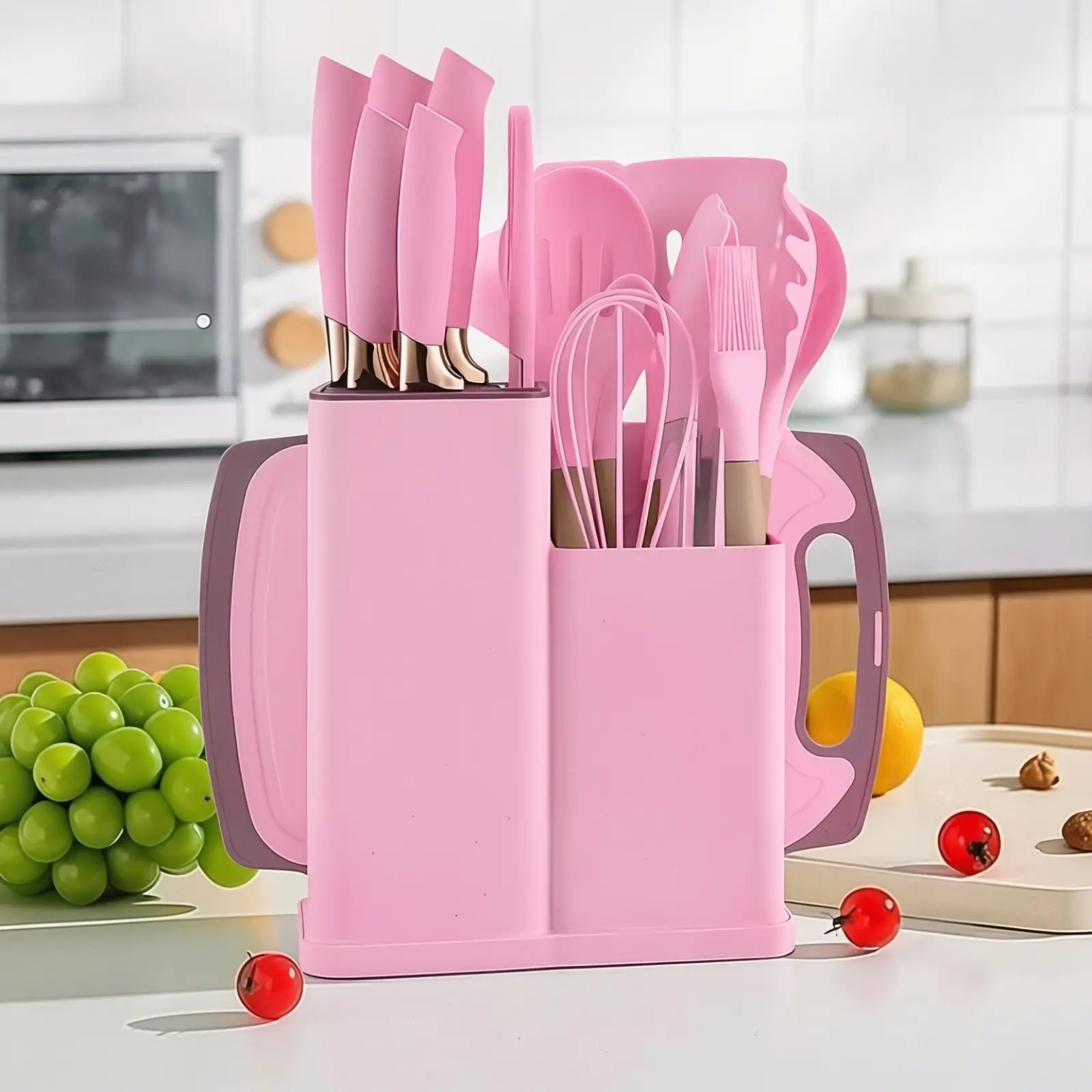 Description This 19-piece silicone kitchen utensil set is perfect for anyhousehold. Made of durable, food-grade silicone, theseutensils are heat-resistant and sturdy. Complete 19-piece kitchen set Includes soup ladle Made of durable, food-grade silicone Heat-resistant and sturdy for all your cooking needs With this set, you'll have all the essential utensils you needto cook up a storm in the kitchen. Plus, their heat resistancemeans you won't have to worry about melting or warpingunder high temperatures. Add this durable and versatile kitchen supplies set to youcooking arsenal today!